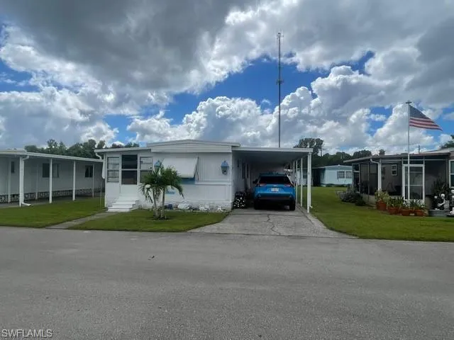 Mobile home with 2 bedrooms,1.5 bath, locate in Fort Myers fl.55+community.Gated community.Close to downtown Fort Myers,15 minutes to RSW airport and close to Punta Gorda airport.This home comes with the share of the land insist on keeping the HOA dues lower than most communities.includes lawn, trash,cable and internet.