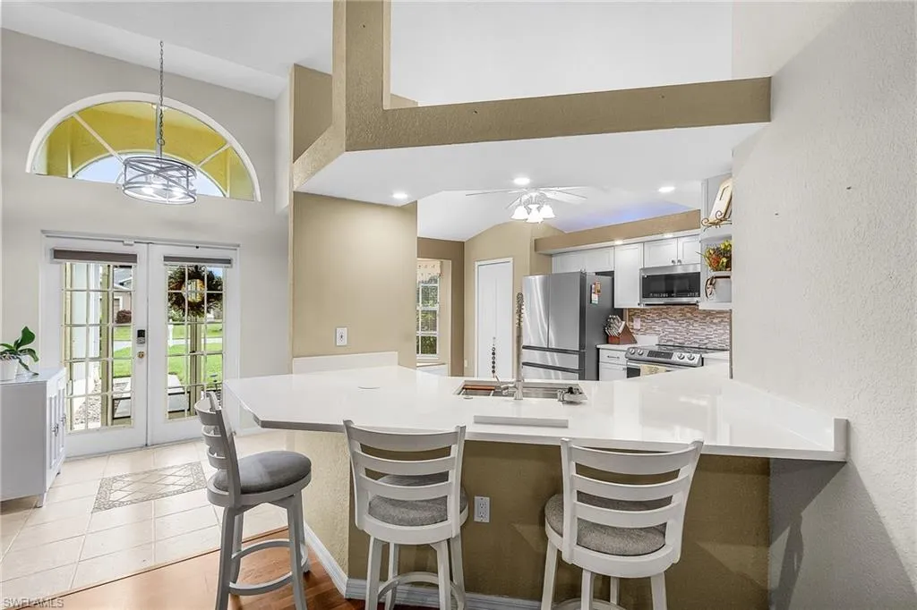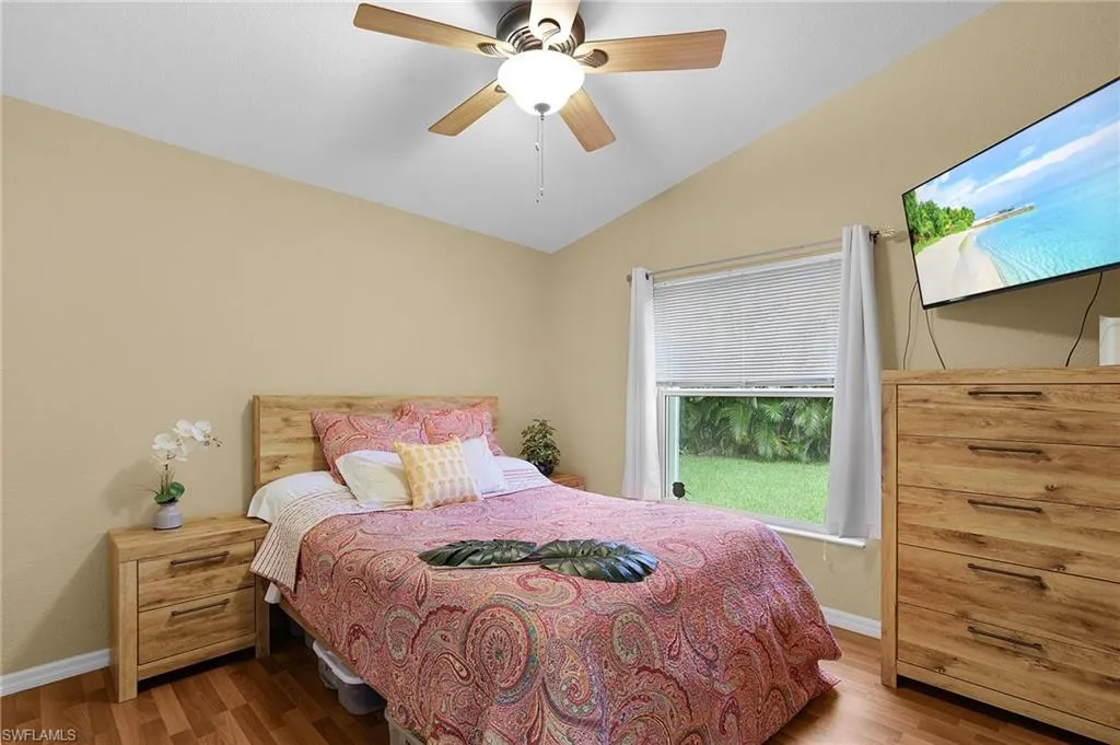 Welcome to your slice of paradise in sunny Cape Coral! This beautifully maintained single-family CBS construction home, built in 1999, blends timeless charm with some of today’s most sought-after updates. Featuring 3 spacious bedrooms and 2 full baths, this residence is ideal for full-time Florida living or a seasonal escape. Vaulted ceilings and natural light flow through the spacious living area, connecting to the lanai and private backyard. The primary suite offers dual vanities and a walk-in shower, while guest bedrooms provide flexible space for family, visitors, or a home office. Key features about this home: Roof age (2016), ensures peace of mind. Water heater (2016) and A/C replacement (2020) keep the home running efficiently. A stunning 2023 full kitchen remodel showcases sleek cabinetry, quartz counters, and stainless appliances—truly the heart of the home. Freshly rescreened lanai (2025) offers a breezy spot to sip your morning coffee or unwind at sunset. Outside, you’ll enjoy the best of Florida living with lush surroundings and plenty of space for entertaining, grilling, or soaking up the sunshine. With no HOA and zero rental restrictions, you have the freedom to live, rent, or invest on your terms. Whether you’re a snowbird chasing warm winters or a year-round resident embracing the Florida lifestyle, this home delivers a winning combination of value, comfort, and charm.