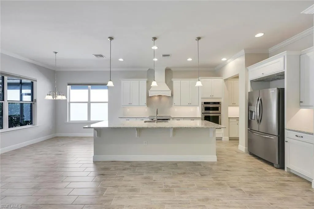 Wonderful opportunity for a Spacious 4 Bedroom Plus Den Pool and Spa Home offered in Desirable Compass Landing! Complete Interior Painting recently completed! Beautiful Tile Flooring flows seamlessly throughout the Great Room and Main Living areas of the One Story, Open Concept plan. Generous Kitchen that includes Informal Dining Area, Quartz Countertops and Stainless-Steel Appliances along with a Formal Dining Room with Coffered Ceiling and Butler’s Pantry is perfect for family and entertaining. A Private Preserve View with Northern Exposure creates a tranquil setting from the Picture Window Screened Pool, Spa and Outdoor Living Space. Compass Landing is a vibrant gated community with Clubhouse, Pool and Spa, Fitness Room, Play Area and is located close to North Naples’ latest dining and shopping offerings.