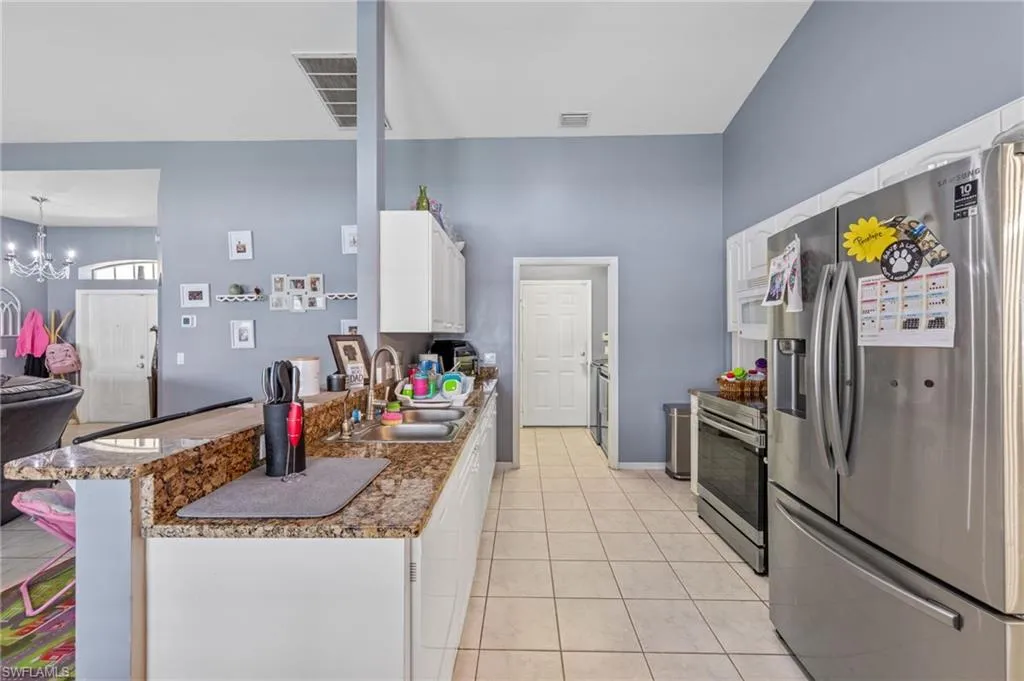 This bright and move-in ready 3/2/2 with a versatile den (perfect for a home office, gym, or easily converted to a 4th bedroom) offers over 1,900 sq. ft. of comfortable living space. Plenty of updates and upgrades over the recent years: New oven, pool pump and filter housing replaced in 2025. New AC in August 2024. Roof, water heater, refrigerator, washer and dryer replaced in 2021. Step inside to an open concept floor plan with fresh interior and exterior paint, upgraded lighting and ceiling fans, and a bright spacious atmosphere, great for entertaining. The kitchen features granite countertops, stainless steel appliances, a large pantry and plenty of storage. The primary suite includes two walk-in closets, direct pool lanai access, and a luxurious bathroom with dual sinks, a makeup vanity, solid surface counters, a walk-in shower, and a soaking tub. Enjoy Florida living at its best in your private backyard oasis with a screened lanai that overlooks your pool and the beautiful backyard surrounded by a 6-foot privacy fence, perfect for entertaining or relaxing. The pool is surrounded by a child fence for extra safety. Fantastic central location just minutes from Walmart, Aldi, schools, restaurants and medical offices. Don’t miss this opportunity to own a beautifully updated home that has been well maintained!
