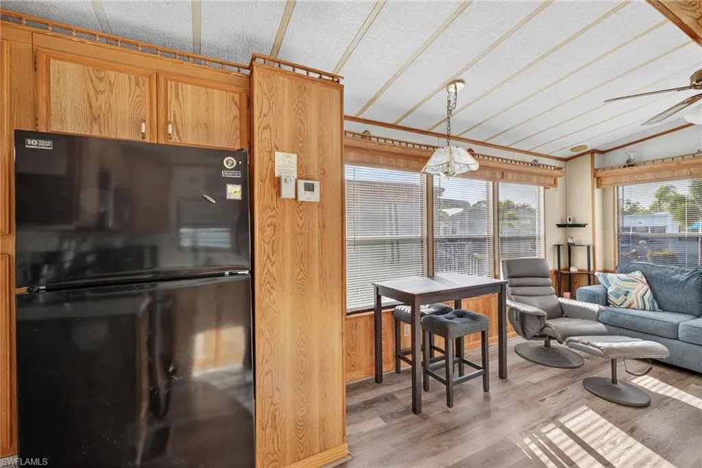 The well-appointed kitchen offers ample cabinet space and a cozy dining nook, providing everything you need for easy everyday meals. The spacious living area is perfect for relaxing or entertaining, while the large bedroom includes generous closet storage and convenient access to the full bathroom. An enclosed Florida room adds versatile space—ideal for reading, hobbies, or enjoying the peaceful surroundings.