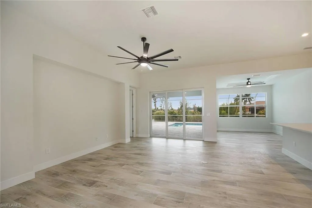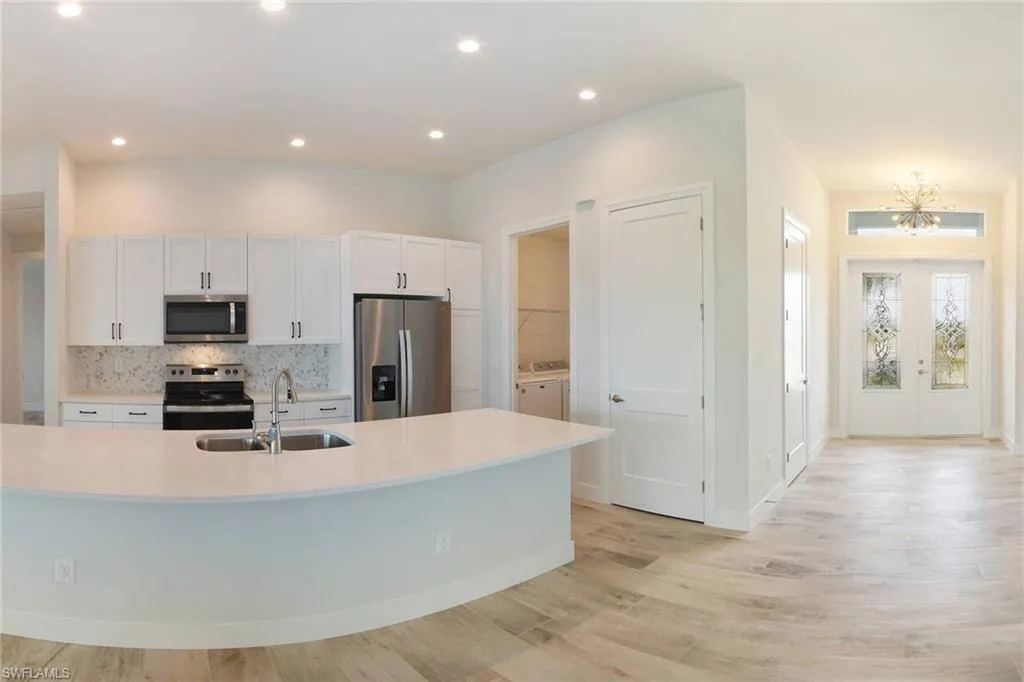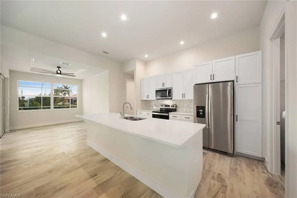Welcome to this stunning 3-bedroom, 2-bathroom (including a pool bath) home boasting a spacious 1,931 square feet of luxurious living space. Situated in a desirable location with an INTERSECTING CANAL VIEW, this property offers the perfect blend of elegance and functionality. As you enter, you’ll be greeted by an inviting ambiance enhanced by the contemporary design and premium finishes throughout. The expansive floor plan features 8-foot interior doors and sliders, creating a seamless flow between the indoor and outdoor spaces. The heart of the home is the beautifully appointed kitchen, which showcases QUARTZ countertops, complemented by sleek cabinetry and modern appliances. Entertain guests effortlessly in the open-concept living and dining areas, adorned with exquisite tiles that exude both style and durability. Retreat to the master suite, a tranquil haven complete with a spa-like ensuite bathroom and ample closet space. Two additional well-appointed bedrooms provide comfort and privacy for family members or guests. Step outside to your private oasis, where you’ll find a sparkling FRESH WATER CANAL WITH POOL AND SPA surrounded by a pavered pool deck and lanai, perfect for relaxing or hosting outdoor gatherings. The premium landscaping package enhances the curb appeal of the property, creating a picturesque setting to enjoy year-round. Additional features include a TILE ROOF WITH IMPACT WINDOWS AND SLIDERS for added security and energy efficiency, as well as a pool heater for year-round enjoyment. The slightly oversized garage offers extra storage space and is finished with epoxy flooring for a polished look. Conveniently located near shopping, dining, and entertainment options, this meticulously maintained home offers the ultimate Florida lifestyle experience. Don’t miss the opportunity to make this exceptional property your own!