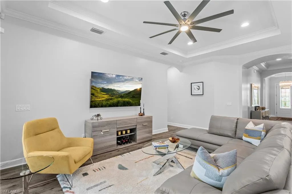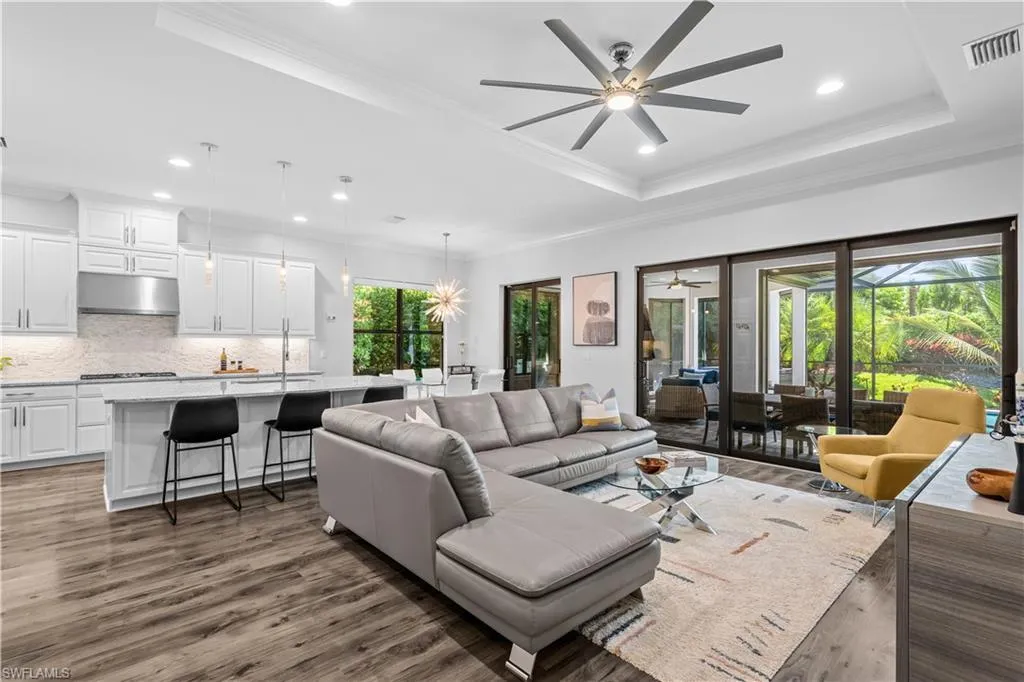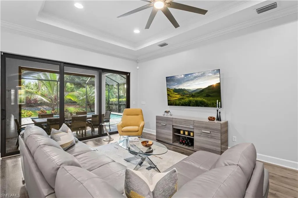 This property also comes with a Club/Sports Membership, granting full access to all the amenities of Esplanade Golf & Country Club (limited golf opportunities all year round!). These include the resort pool with cabanas and a poolside Bahama Bar, tennis and pickleball courts, bocce, a Koquina Day Spa, a fitness center, and a dog park. There are also 14 miles of trails and an 18-hole private golf course. On-site dining options include a restaurant, bar, wine tasting room, and a Starbucks-style café. The total quarterly fee of just $2,327 include property landscaping maintenance and full access to all the resort-style living amenities at Esplanade. This home offers a perfect blend of comfort, luxury, and active living, making it a truly unique and appealing option in Naples.