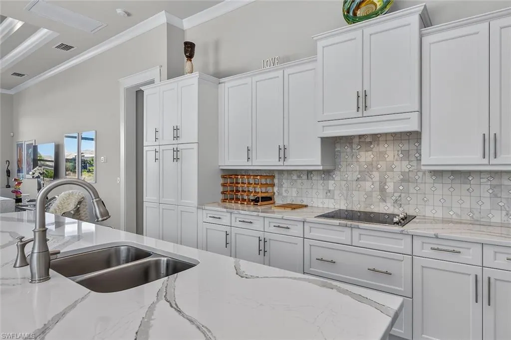 Tucked within the natural beauty of The Isles of Collier Preserve, this residence offers a rare combination of privacy, comfort, and everyday luxury. The sought-after Plumeria II floor plan welcomes you with a sun-filled, open layout flowing seamlessly to a private heated courtyard pool and covered lanai featuring no-seeum screens. A side privacy wall creates the feeling of a secluded retreat while tranquil lake views remain in sight. The main home features two spacious bedrooms plus a versatile Casita, ideal for guests or a private office, with its own entrance, bath, and pool access. Elegant details include millwork, custom built-ins, quartz countertops, and a chef’s kitchen with GE Profile stainless appliances. A temperature-controlled 6,500-bottle wine room is a true showpiece. Additional highlights include a whole-house 20kw Briggs & Stratton generator and a unique split garage design offering convenience and flexibility. Life at The Isles of Collier Preserve extends beyond the home. Residents enjoy low fees, no CDD, and abundant amenities including waterfront dining at The Overlook Bar & Grill, pickleball, tennis, bocce, resort and lap pools, fitness center, dog park, kayaking, and scenic trails, just minutes from downtown Naples and beaches.