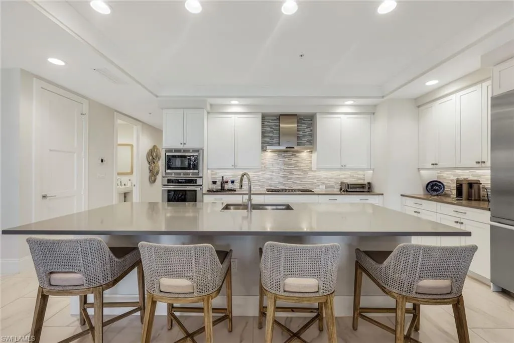 Walk from your terrace to the resort pool/spa area! This is your RARE opportunity to own one of the most unique and beautifully upgraded homes, with extended terrace space on both the East & West Sides of the home in Bonita Bay.This gorgeous LIKE NEW, HOME in Seaglass of Bonita Bay has it all – tile flooring throughout the main living areas, beautiful wood flooring in the bedrooms and den, custom lighting, high end appliances, and so much more! With almost 3090 square feet of air conditioned space and an additional 1580 square feet of outdoor space, there is plenty of room for family and friends to gather together! Enter the home through the private elevator lobby which can be locked/unlocked from your cell phone. Once inside, be impressed by the spacious layout, the volume ceilings and THE FLOOR TO CEILING WINDOWS throughout the home! The outdoor space is second to none! The lanai on the West side of the home boasts a gas grill & hurricane shutters. Just outside the screened lanai is an outdoor patio where lounging in the winter sun is a favorite past-time. The kitchen, living & dining are open to one another, with the primary bedroom suite on the Western side of the home and all guest bedrooms tucked privately away on the East side of the home. WALK to the COMMUNITY POOL FROM your lanai! This condo lives like a single family home, as it is so easily accessible. Walk from the garage to your home or take the elevator. Easy living at its finest! No maintenance, no fuss! Each night, you will enjoy the spectacular colors of the sky as the sun sets to the West . When you desire the perfect view of the Southwest Florida coastline from Fort Myers to Naples, simply take the elevator to the 28th floor. There is an exclusive rooftop deck with plenty of space for you and your guests to relax with your favorite bottle of wine. In the mornings, sit on the East balcony with a cup of coffee as the sun rises in the sky. Additional highlights include a Water Cop leak detection system, new AC & new refrigerator in 2020, and a new hot water heater in 2023. The rich amenity center is like no other with a huge club room, card room, billiards room, state of the art gym, movie theater, massage rooms, steam showers, and one of the most beautiful pools in all of Bonita Bay! Bonita Bay amenities include a private beach club, kayaks, canoes, pickle ball, tennis, several community parks/public spaces, 12+ miles of walking/biking paths and a full service marina/restaurant! There are FIVE golf courses, several restaurants, a state of the art fitness center, tennis and so much more available with club membership (additional fees)! Bonita Bay is close to ALL that SWFL has to offer – world class dining/shopping, beaches, nature preserves, the burgeoning downtown Bonita Springs, downtown Naples and so much more! A very SHORT drive to RSW International Airport! Whether you are searching for your winter retreat or a permanent residence, this home could very well be THE ONE!
