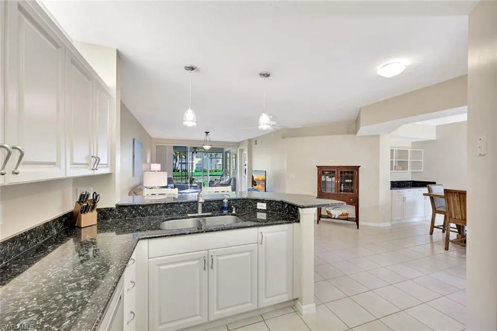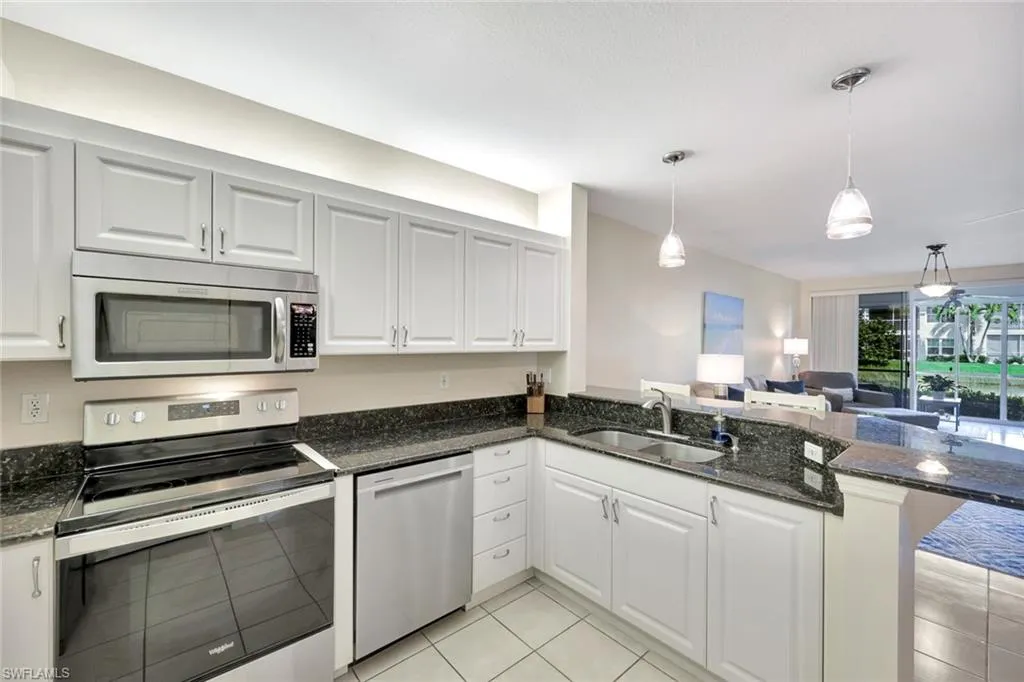 LAKE VIEW & TURNKEY! This 2 bedroom/2 bath first-floor condo is open and welcoming. The perfect mix of comfort, style, and convenience for SWFL living. Through the front door the open floor plan offers an abundance of natural light and a neutral color palette that is the perfect backdrop for any decor. The kitchen boast crisp white cabinetry, stunning dark granite countertops, newer stainless steel appliances, and generous storage paired across from the formal dining area with built in Buffet for additional storage. The primary suite offers serene lake and fountain views and ensuite bath features dual raised vanities and upgraded walk-in shower with frameless glass door. The lanai has been enclosed and fitted with IMPACT sliding glass doors, expanding your living space and allowing you to enjoy rain or shine. This condo also has a newer Air Conditioner and newer Water Heater! Stone-coated steel roofs replaced community-wide in 2020 for peace of mind and durability. ResortStyle Living at Lighthouse Bay: This gated community is packed with amenities, including:5 pools, including a lap pool 2.5miles of walking/jogging paths A robust bocce program Tennis courts with a pro on staff 2 boat houses, a fitness center, sauna, clubhouse, and library Arts & Learning Center and more! As a bonus, a Bronze Membership to the Brooks Commons Club is included, granting access to a private restaurant, enrichment center, pickleball, vibrant social programs, and more. Prime Location. Enjoy being just minutes from Coconut Point Mall, dining, entertainment, SWFL International Airport, and pristine beaches!