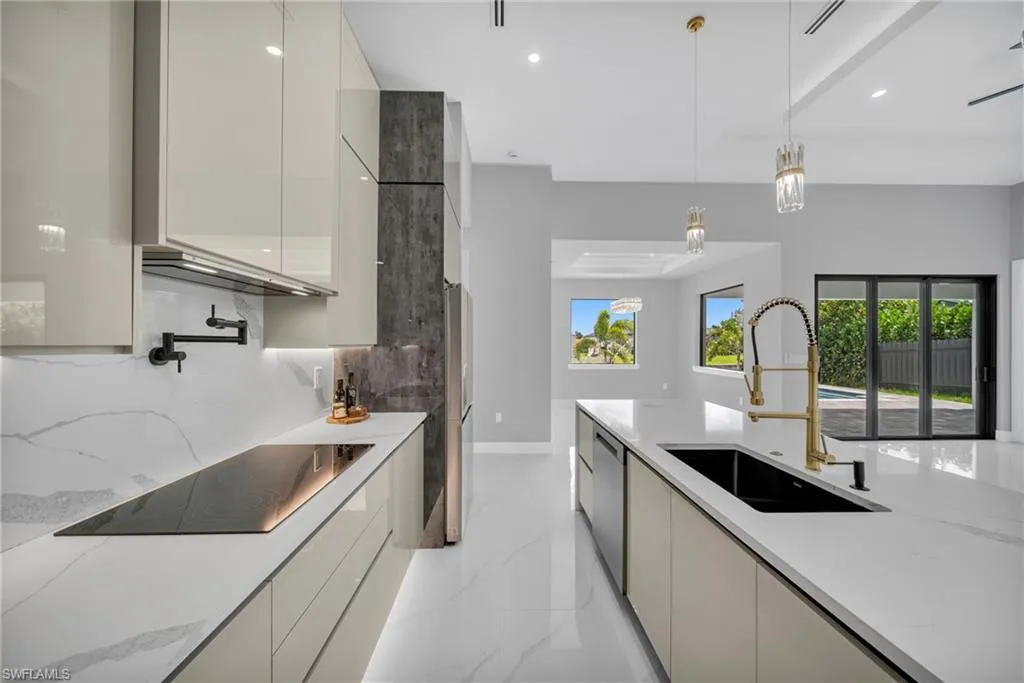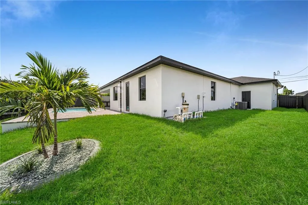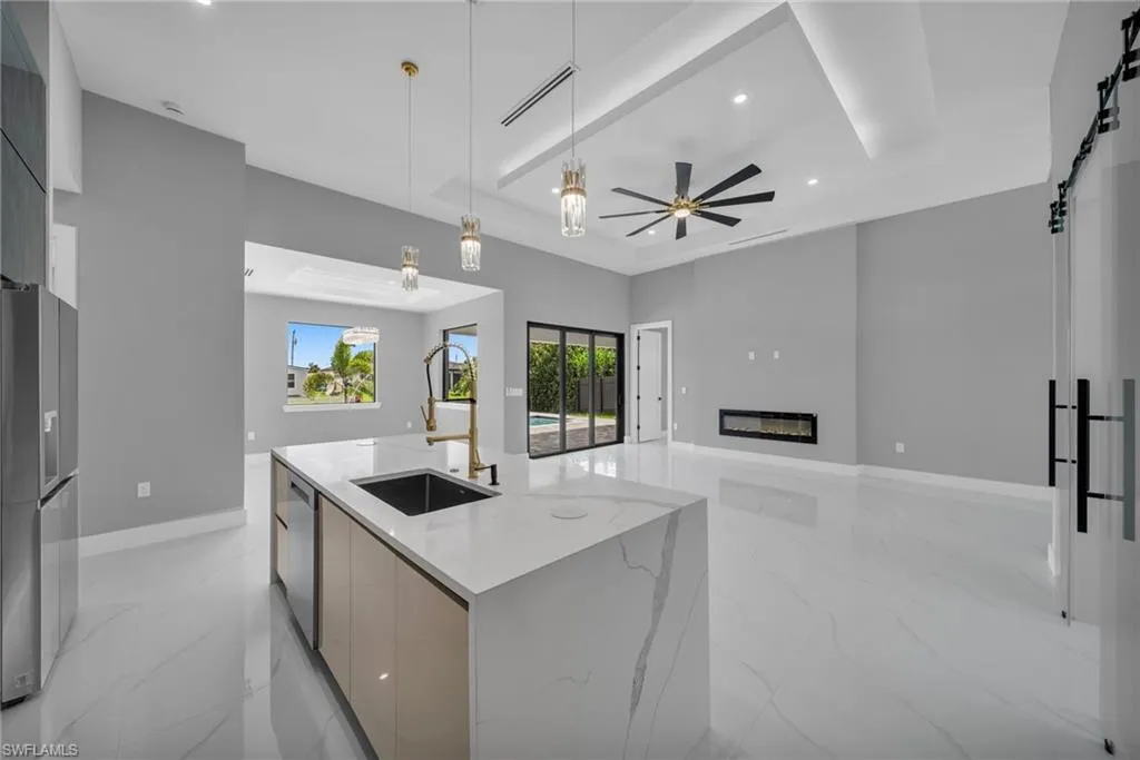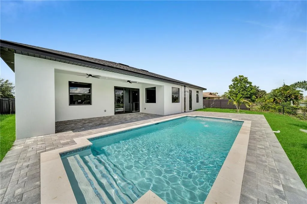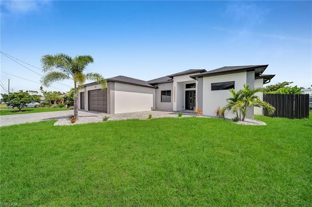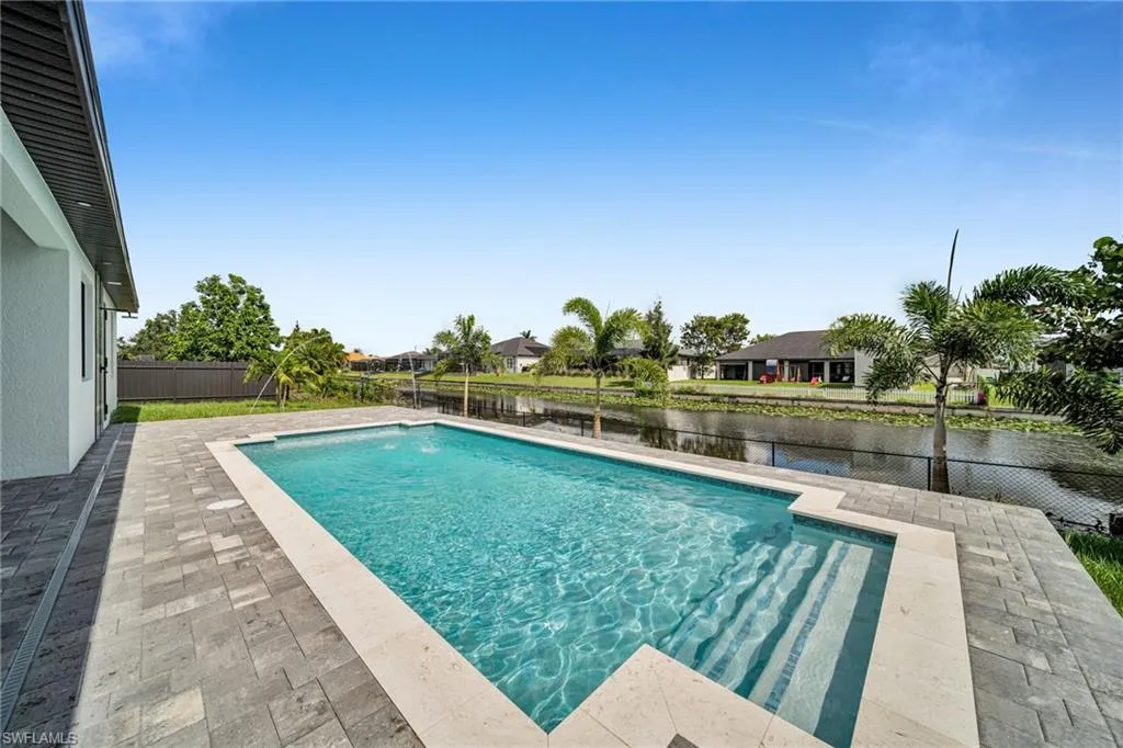 STUNNING WATERFRONT NEW CONSTRUCTION HOME WITH LUXURIOUS UPGRADES!! All ASSESSMENTS ARE IN AND WILL BE PAID IN FULL AT CLOSING!! THIS HOUSE IS NOT IN A FLOOD ZONE! All around fenced for privacy, This 4 bedroom, 3 full bathroom, and 3 car garage, with impact windows and doors. Residence offers over 2,100.sq. ft. of living space, Beautiful pool with saltwater system and a convenient outdoor shower, outdoor kitchen with stove, sink and refrigerator in lanai under roof area, extended kitchen with stainless steel appliances and a convenient island with a breakfast bar, living room has high ceilings and plenty room, beautiful modern tile through the home. Large master with 2 spacious walk-in closets, Great bath with modern featured and bathtub with custom tile surround. Two bedrooms with en-suites bathrooms are designed to satisfy the buyer, the remaining bedroom also offers ample storage with walk-in closets. This home offers comfort and functionality in a fantastic location. Don’t miss this incredible opportunity!