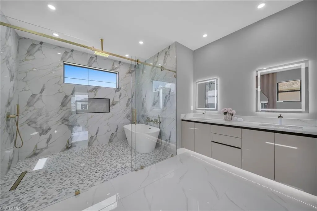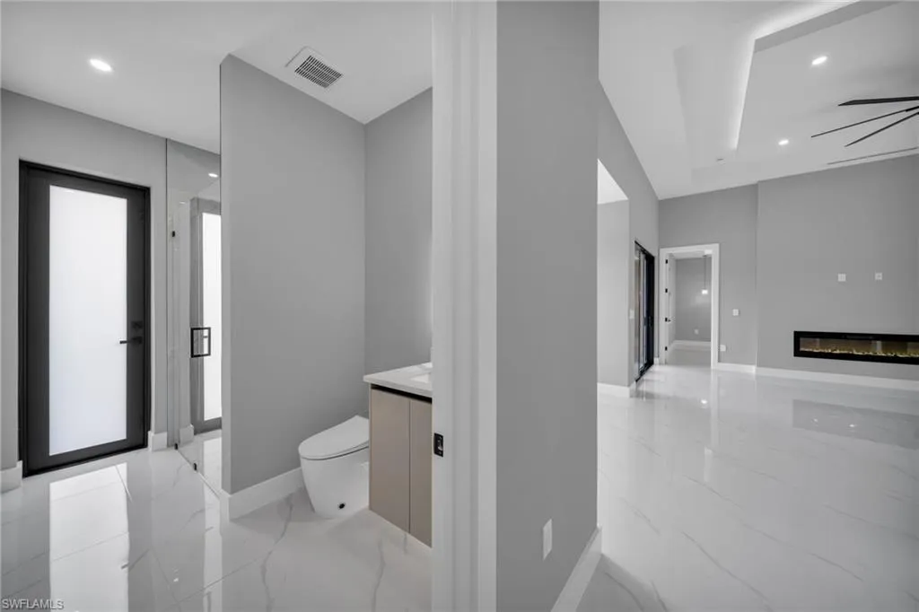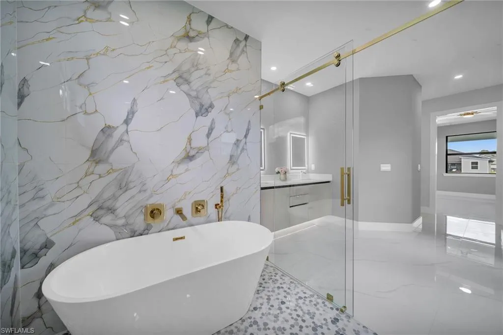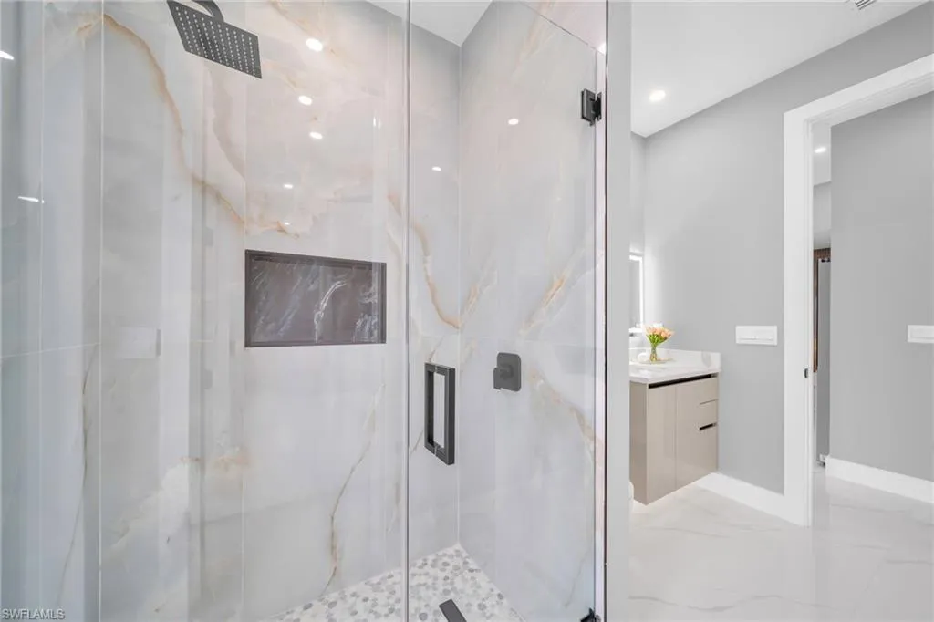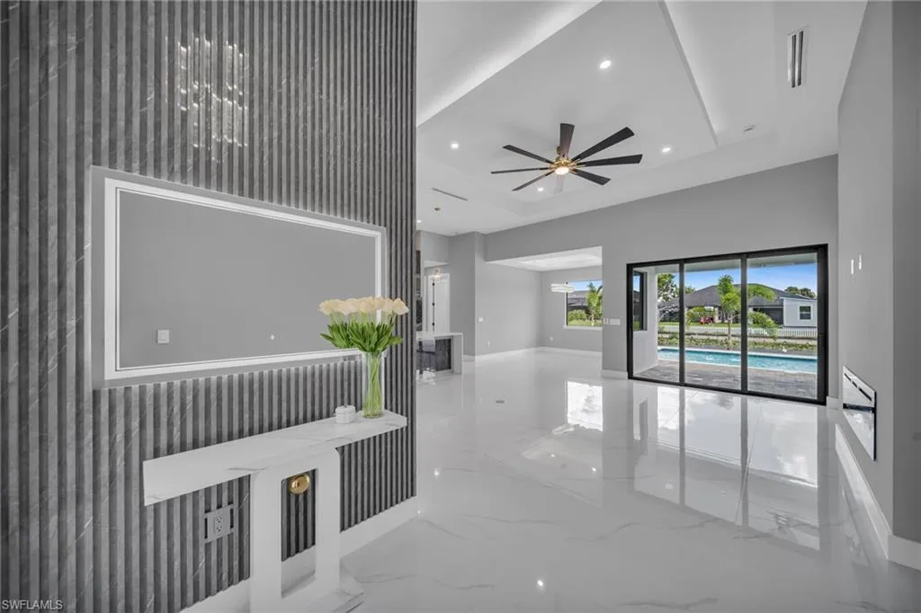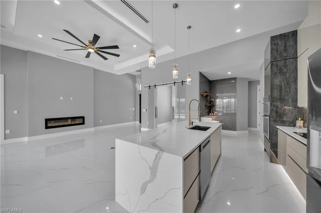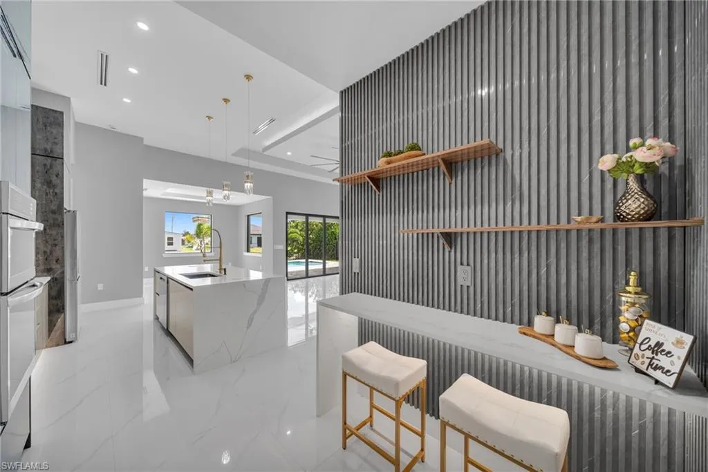 STUNNING WATERFRONT NEW CONSTRUCTION HOME WITH LUXURIOUS UPGRADES!! All ASSESSMENTS ARE IN AND WILL BE PAID IN FULL AT CLOSING!! THIS HOUSE IS NOT IN A FLOOD ZONE! All around fenced for privacy, This 4 bedroom, 3 full bathroom, and 3 car garage, with impact windows and doors. Residence offers over 2,100.sq. ft. of living space, Beautiful pool with saltwater system and a convenient outdoor shower, outdoor kitchen with stove, sink and refrigerator in lanai under roof area, extended kitchen with stainless steel appliances and a convenient island with a breakfast bar, living room has high ceilings and plenty room, beautiful modern tile through the home. Large master with 2 spacious walk-in closets, Great bath with modern featured and bathtub with custom tile surround. Two bedrooms with en-suites bathrooms are designed to satisfy the buyer, the remaining bedroom also offers ample storage with walk-in closets. This home offers comfort and functionality in a fantastic location. Don’t miss this incredible opportunity!