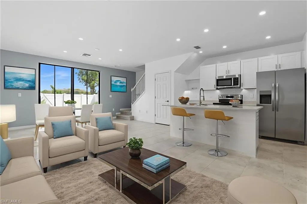 Modern Elegance Meets Resort Living in Portico, Fort Myers. Welcome to 14107 Oviedo Place, where contemporary design and comfortable living come together beautifully. Built in 2022, this stylish 3-bedroom, 2.5-bath townhome is nestled within the prestigious gated community of Portico at Buckingham, offering the perfect balance of privacy, sophistication, and resort-style amenities. Step through the front door and into an open, light-filled living space designed for today’s modern lifestyle. The gourmet kitchen showcases granite countertops, stainless steel appliances, and a large center island—a true gathering place for family and friends. Upstairs, unwind in the luxurious primary suite, complete with a walk-in closet and a spa-inspired en-suite bath designed for relaxation. Two additional spacious bedrooms provide comfort and versatility for guests, family, or a home office. Your private, fenced backyard offers a serene retreat—perfect for morning coffee, evening gatherings, or simply soaking in the Florida sunshine. Notable Features: Finished garage with A/C – perfect for a gym, studio, or extra storage, Smart home technology for convenience and peace of mind, Energy-efficient construction, Low HOA fees, Resort-Style Community Living: Within Portico’s secure gates, residents enjoy a world of amenities including a sparkling pool, clubhouse, fitness center, tennis and basketball courts, and scenic walking trails that weave through this vibrant, growing neighborhood. Experience the best of modern Florida living—style, comfort, and community—all in one exceptional home. Welcome to your new beginning at 14107 Oviedo Place. Listing photos contain virtual staging.