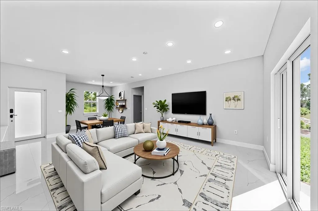 Experience the best of new construction in a flourishing area of Lehigh Acres! This stunning 3-bedroom, 2-bathroom home features a bright and airy open-concept kitchen, perfect for entertaining. The kitchen boasts elegant wood cabinets, pristine quartz countertops, and a full suite of brand-new stainless steel appliances. Enjoy the Florida sunshine and ultimate peace of mind with impact windows and doors throughout. With gorgeous porcelain tile underfoot and zero updates needed, this move-in-ready home offers the perfect blend of modern style and effortless living. Schedule your private showing today!