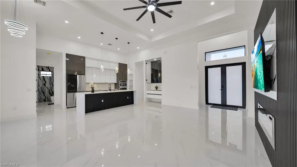 Step inside to discover an open-concept floor plan filled with natural light, soaring ceilings, and a sleek, custom TV feature wall with a flat-screen TV included in the purchase. The heart of the home is the chef-inspired kitchen, beautifully designed with clean lines and contemporary finishes, perfect for both daily living and entertaining.