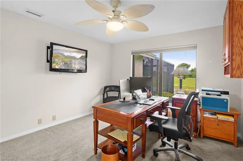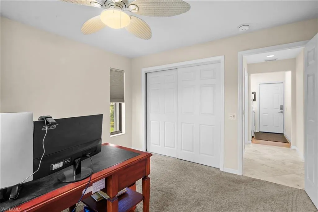 A GOLFER’S DREAM. Located in The Forest Country Club! Wake up to panoramic views of The Bear—SWFL’s NEWEST GOLF COURSE with scheduled grand opening in December 2025 – featuring a $10M renovation with no homeowner assessment. Enjoy a 4-bedroom, 3-bath home that perfectly blends comfort, style, and space for entertaining. The open-concept design creates an effortless flow between living, dining, and outdoor areas, leading to a private backyard oasis overlooking the par-4 6th hole—ideal for relaxing or hosting by the pool. The main-level primary suite and upstairs guest quarters offer privacy for family and visitors alike. Peace-of-mind updates include a 2023 roof, new pool cage and equipment in 2023, a newer washer, dryer, and water heater, plus impact glass, storm shutters, and high elevation with no prior water intrusion in the home; transferable flood insurance. The gated community offers low HOA fees that include high-speed fiber-optic internet, TV, and security. Membership is not mandatory to live in the community. There are non-bundled club memberships with no waitlist. The Forest Country Club features 36 holes of championship golf (TWO distinctly different courses), a top practice facility, a new fitness center, a renovated clubhouse, tennis, pickleball, a tiki bar, and a vibrant social life—minutes to beaches, shopping, dining, and RSW Airport. Contact The Forest membership director at The Forest about the limited-time $10,000 initiation-fee reduction celebrating The Bear’s December 2025 grand reopening.