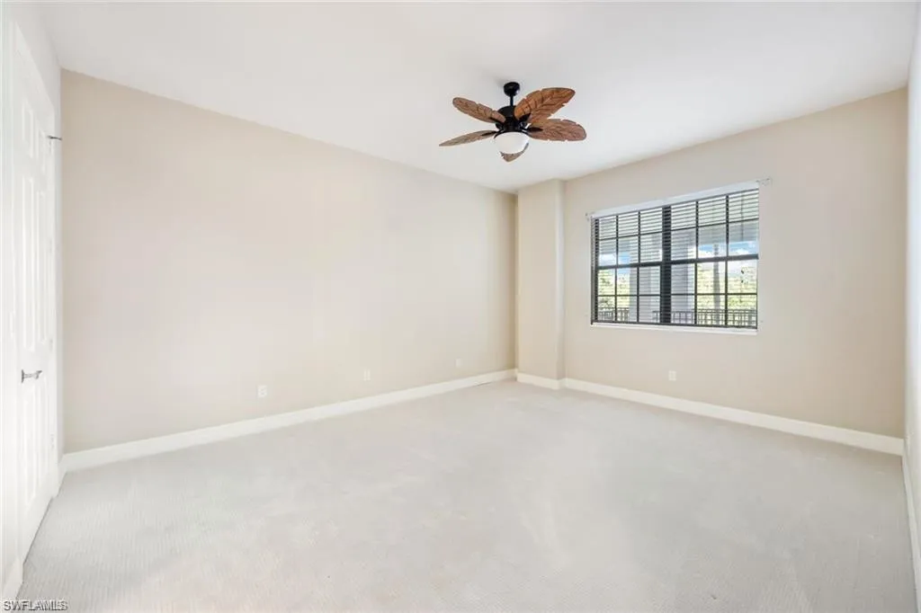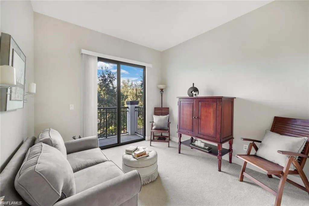 Rare opportunity to own a beautifully appointed third-floor residence offering expansive tropical lake views and gorgeous sunsets from the West. This spacious home features three bedrooms plus a den and three-and-a-half baths. The kitchen is designed for the discerning cook with granite countertops, a natural gas cooktop, and custom wood cabinetry. Situated on the third floor, this residence provides both privacy and convenient access within the building. Located in the award-winning Miromar Lakes Beach and Golf Club, the property offers access to 700 acres of freshwater lakes for swimming, boating, water-skiing, and fishing, as well as three miles of private white-sand beach. Residents enjoy an exceptional array of amenities including a Beach Club with indoor and outdoor dining, bar lounge, library, billiards and card room, theater, resort-style pool, tennis club, concierge, and marine services. Recognized as the #1 community in the U.S. by the National Association of Home Builders, Miromar Lakes offers championship golf, world-class tennis, resort-style pools, fine dining, and an active social calendar, delivering a premier luxury lifestyle experience.