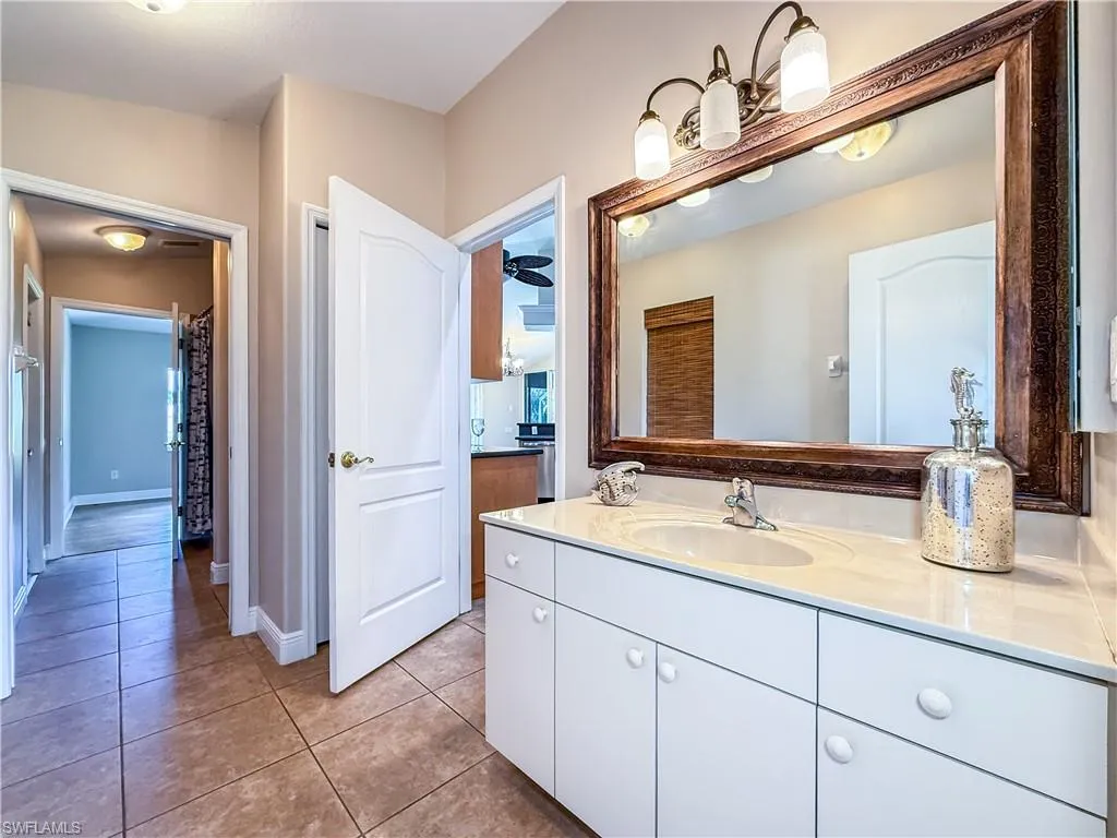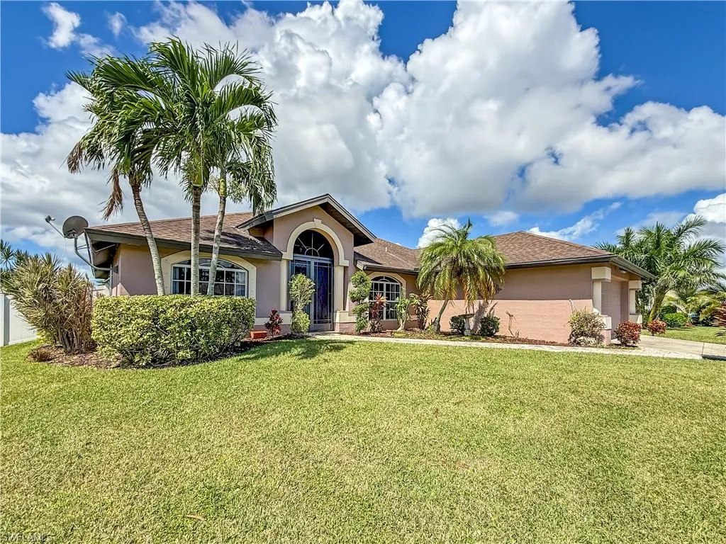 Searching for that perfect SW Cape Coral pool home location with a fabulous Great Room floor plan? Look no further! This custom open concept home boasts corner feature sliding doors seamlessly integrating indoor to outdoor, true Florida entertaining at it’s best. The spacious master suite offers generous closet space and ensuite master bath with separate his & hers large vanities, jacuzzi tub & walk through shower. The perfect guest bedroom area features a jack & jill bath offering guest privacy. An added bonus of a home office/den or children’s playroom