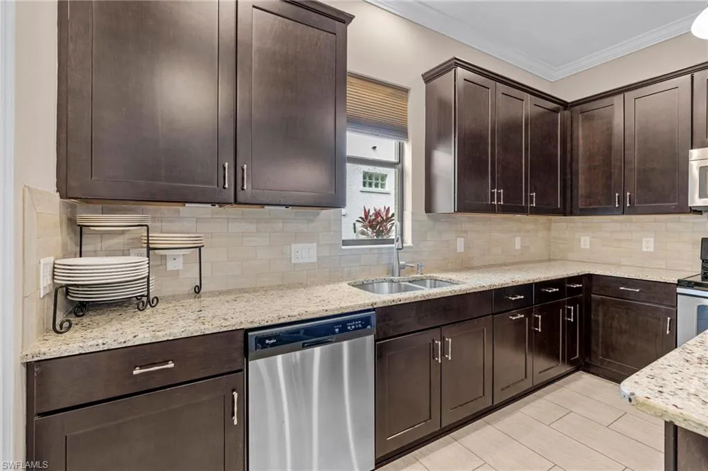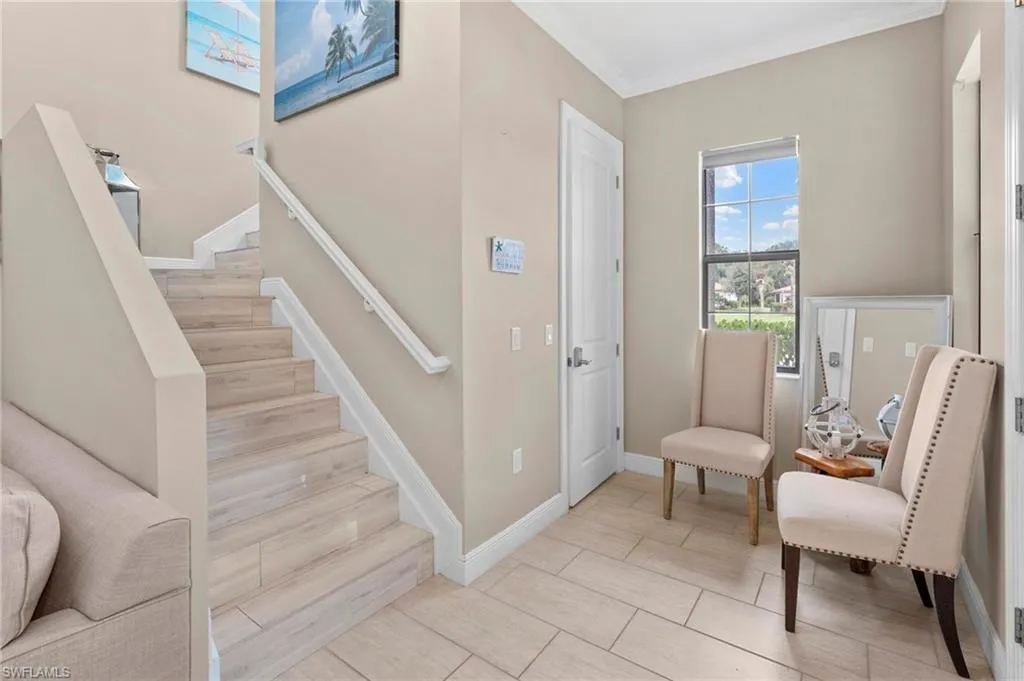 Welcome to this gorgeous WCI-built home, complete with 2nd floor concrete construction! Offering 3 bedrooms 2.5 baths and a 2 car garage. The courtyard style entry provides a grand first impression, while lake views from the front add a serene touch. Step inside to stainless steel appliances, granite countertops with a large island, plentiful dining area and picturesque windows. Upgraded custom cabinetry features soft-close doors and pull-out shelves. The primary suite boost an oversized walk in closet, soaking tub, dual vanities, an oversized frameless glass shower. Two generously sized guest bedrooms share a full bath, offering privacy and comfort for visitors. The main floor includes a powder room, large indoor laundry room, Impact windows and doors, large tankless water heater, upgraded Home Defense pest system for added peace of mind. Enjoy resort-style living with community amenities such as a lakefront heated pool, fitness center, theater, pickleball and bocce with an active social calendar. Affordable HOA fees. Just minutes to Marco Island and Downtown Naples, pristine beaches, supermarkets, shops and plenty of dining!