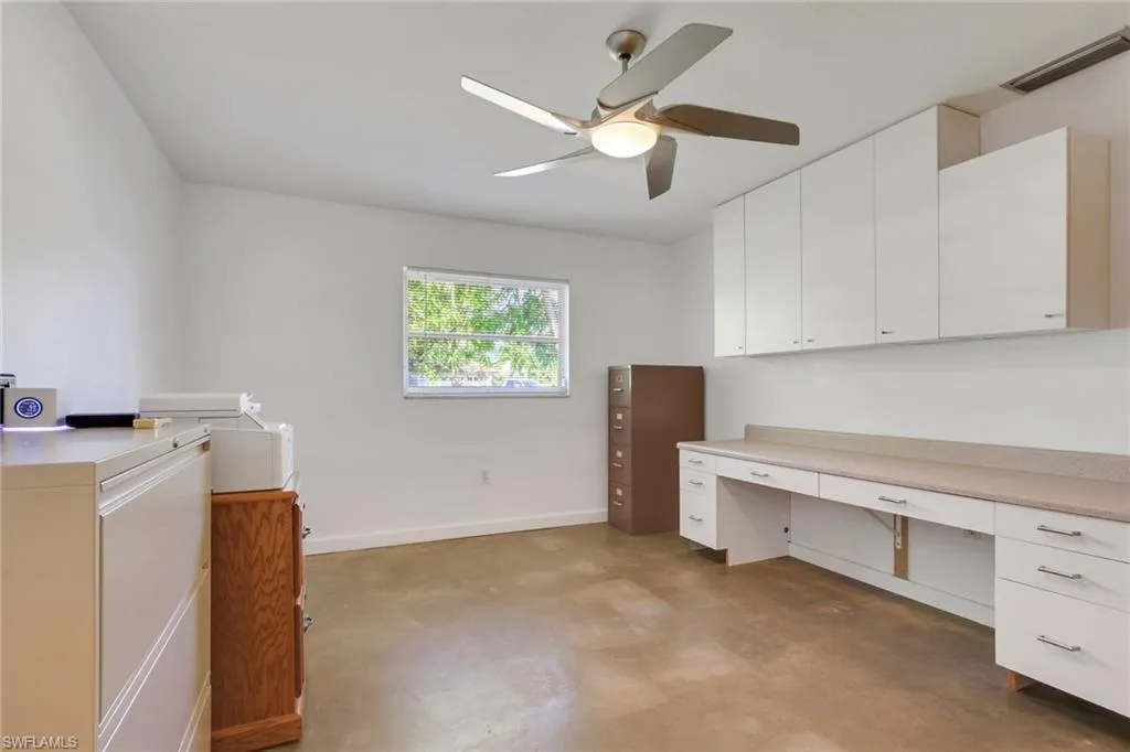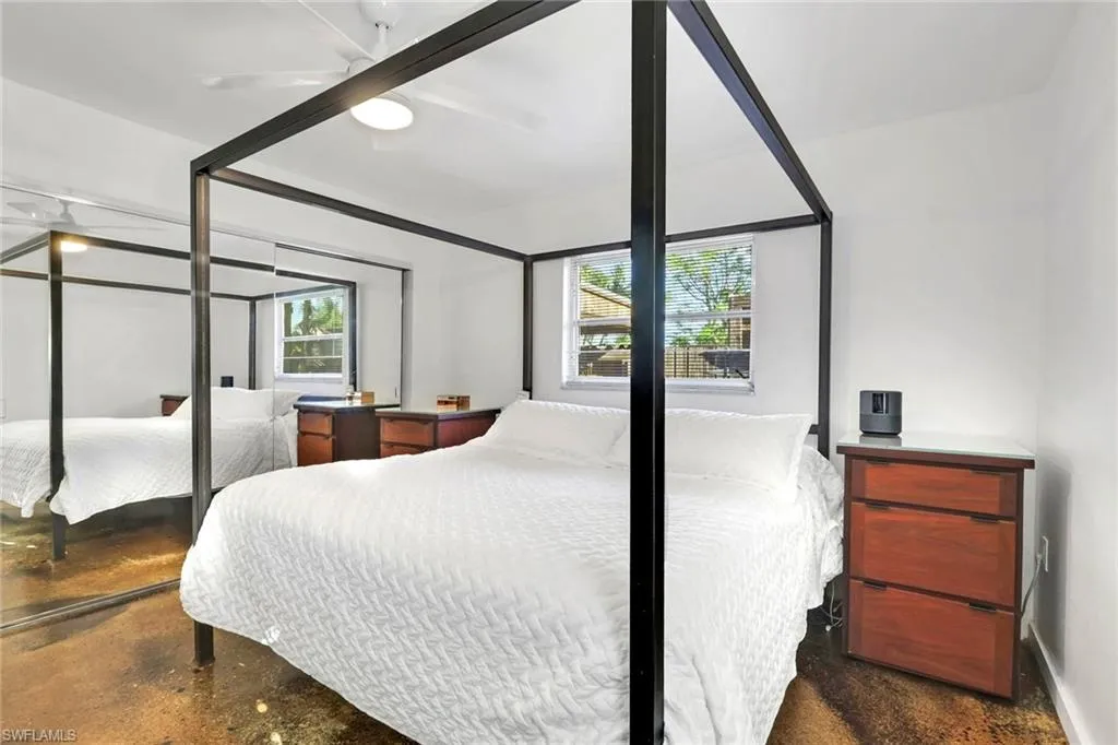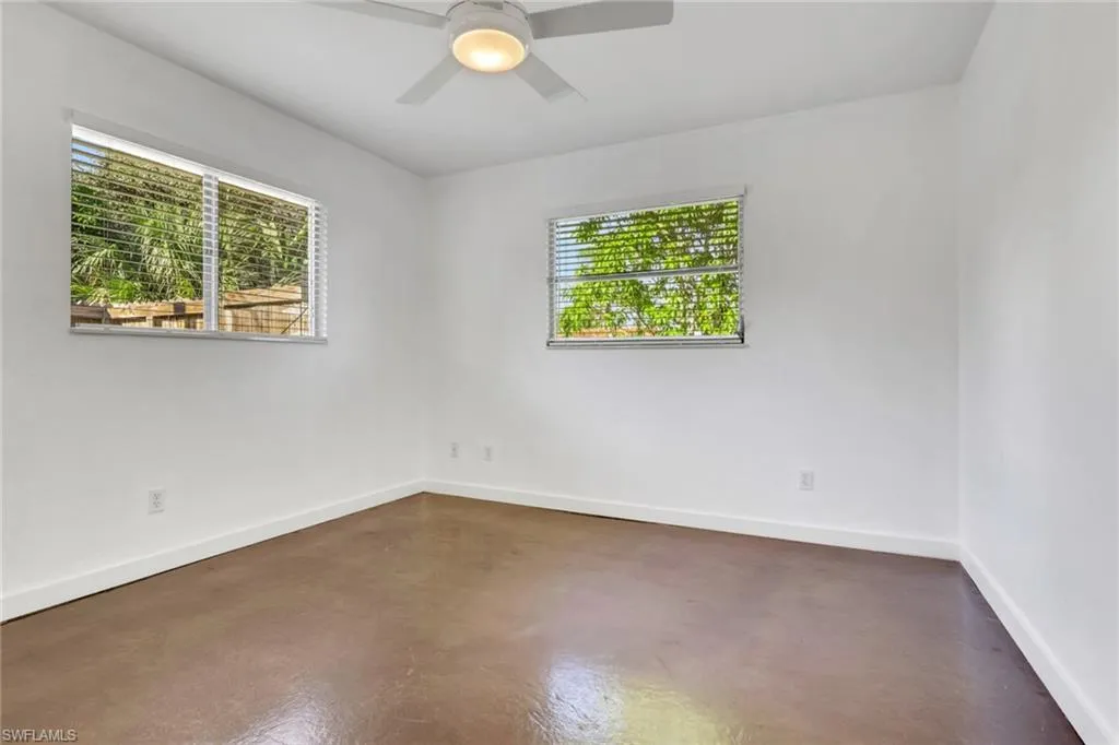 Rarely Available! After 22 years, the owner is moving—and this stunning four-bedroom plus den, two-bath, two-car garage pool home is ready for its next chapter. Perfectly positioned west of 41 in one of Southwest Florida’s most desirable locations, this home truly checks every box for today’s buyer: comfort, style, and functionality in a prime coastal setting just minutes from world-famous white-sand beaches, fine dining, boutique shopping, and Southwest Florida International Airport. Step inside to discover a freshly painted interior featuring industrial-chic, acid-stained floors in the bedrooms and primary bath—an intentional design choice that adds a sleek, modern edge with low-maintenance appeal. The recently renovated primary bath showcases elegant custom lighting, while the updated kitchenfeatures high-end cabinetry, granite countertops, and stainless steel appliances, including a refrigerator and dishwasher.