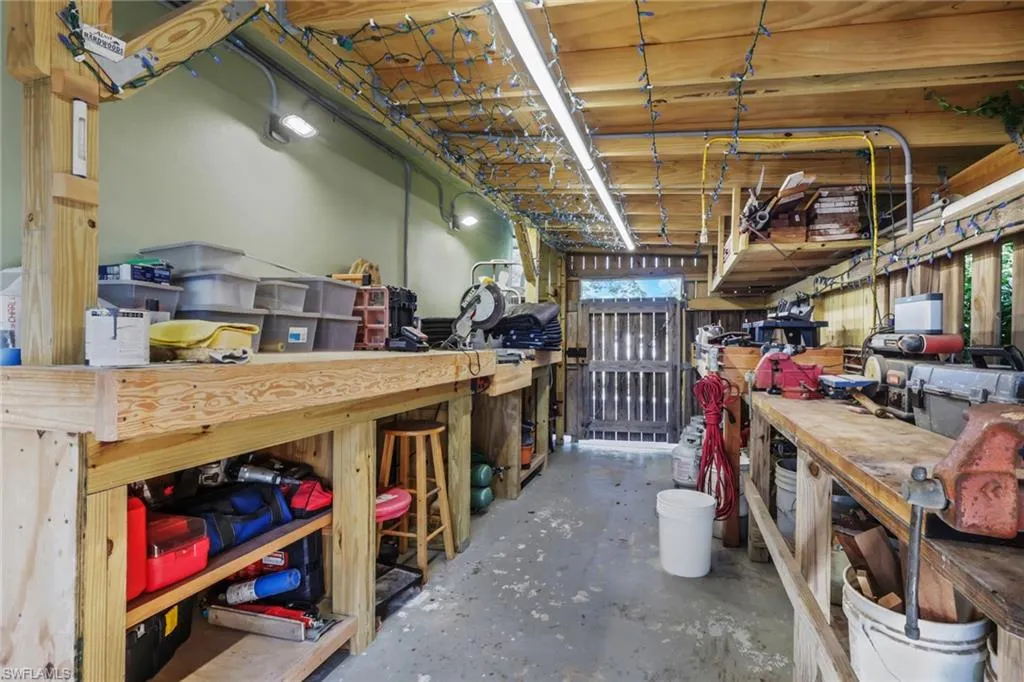 Additional highlights include custom fencing, abundant garage storage with built-in cabinetry, and a separate workshopconveniently tucked beside the home. Outside, enjoy a caged pool, built-in fire pit, and ambient outdoor lighting—all surrounded by beautifully landscaped grounds that invite relaxation and entertaining. Meticulously maintained by skilled builder’s superintendent, this home benefits from thoughtful upgrades and an efficient drainage system. Recent improvements include a raised and replaced garage pump, updated garage door sensors, and a new outdoor pool pump—ensuring peace of mind for years to come. This home also weathered Hurricane Ian exceptionally well, no damage to cabinetry, flooring, or appliances. The home remained dry through both Milton and Helene. Located in a peaceful, sought after non-HOA community featuring a neighborhood feel and no restrictions, this property offers the ideal Florida lifestyle—perfect for year-round living or a seasonal retreat in highly desirable Collier County.