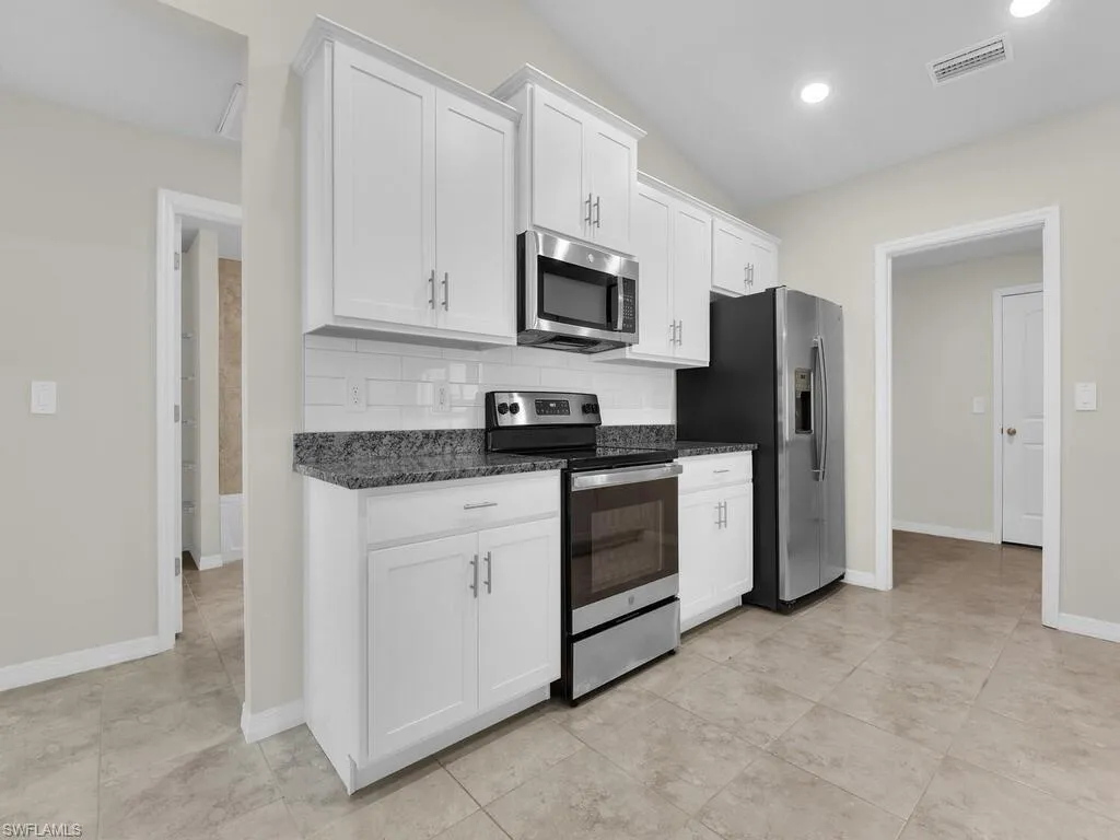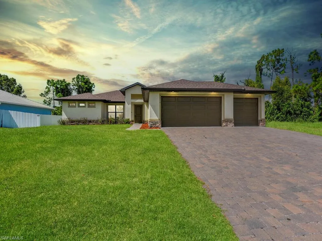 Custom built by Douglas Brooke Homes. This 2022 home is ready for your family today! NO HOA PAYMENT. This desirable floor plan offers 4 beds, 2 baths, a 3-car garage, and a spacious lanai. The 1800+ ft home is a true open floor plan featuring an open view from the kitchen area to the great room and dining area, perfect for entertaining guests. The kitchen boasts real wood cabinets, a breakfast bar island, and stainless-steel appliances. High-end finishes include high ceilings, granite countertops throughout the home, porcelain tile flooring throughout the home. On one side of the home, the owner’s private suite is highlighted with a walk-in closet, a large shower, and dual sinks in the En-Suite. Three extra beds and a bath complete the opposite side of the home. The spacious 3-car garage and oversized extended paver driveway only add to the charm of this home. Easy to commute to restaurants, shopping, hospitals, and nightlife. This is a great opportunity, do not miss out on it!