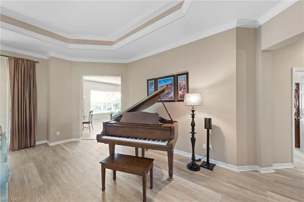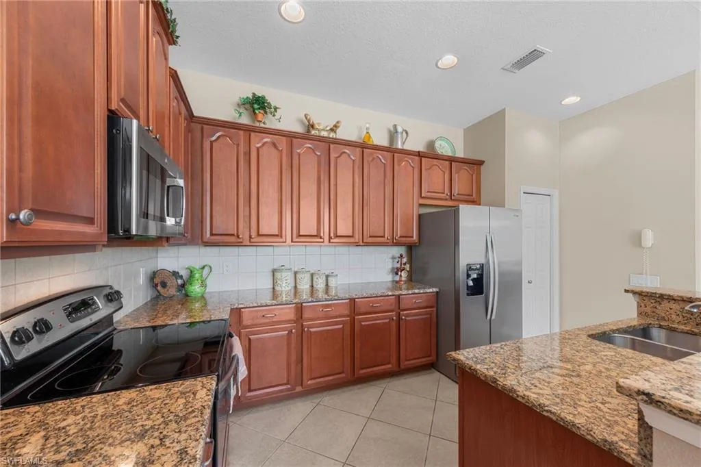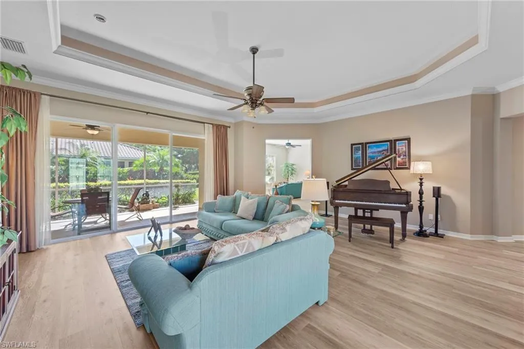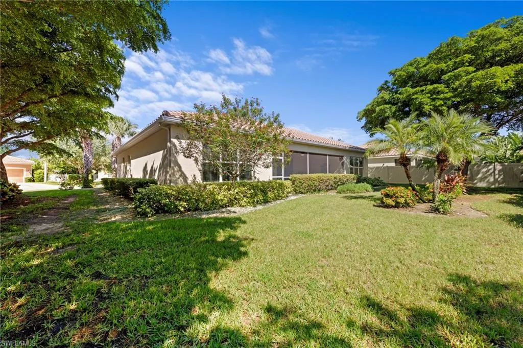 Rare opportunity in this small, quiet, private gated community consisting of only 30 single-family homes with low HOA fees and is located in zone X, which no flood insurance is required! Home is situated on an oversized corner lot and community is in an ideal location on the Estero, and South Ft. Myers Boarder line. Home has been lived in by the same owners since construction with Taylor Morrison builders and has upgrades throughout. Painted in neutral tones, upgraded double, lead glass front entry door, tray ceiling with crown molding, additional crown molding throughout foyer/living rooms, popular luxury vinyl plank flooring, large tile, glass French doors leading to the den, lanai finished in tile for that sought after outdoor living space. Kitchen offers stainless appliances, upgraded granite counter-tops with undermount sink, backsplash tile, and breakfast bar which opens to a comfortable family room with windows along the back wall offering an abundance of natural light. Plus, a nice extra niche for an additional casual eating area. This Family room is ideal as is or make it your own keeping as is or use as a formal dining room with the casual eating area as a comfortable reading nook. Home also offers a generously sized living room with sliders leading to the lanai making it the ideal spot to sit out and enjoy your morning coffee while watching the sunrise. Double door entry to the main bedroom with en-suite, upgraded granite counter-tops, dual sinks, separate garden tub and shower enclosed with glass and tile. The backyard offers enough room if choosing to add a built-in pool/spa. Landscape surrounds the entire house, with large trees on the property and tall privacy shrubs. Could not ask for a better location as this home is centrally located and has close access to both Gulfcoast town center, Coconut Point Mall, FGCU, Hertz arena and the airport, located West of Route 41 plus the community’s entrance is not directly off the heavily traveled Route 41, it is located off a low traveled side street. Beautiful Bonita Beach is only a short 20-minute ride or if into sports there are many golf courses surrounding the area plus pickle ball courts. Must see this one will not last long!