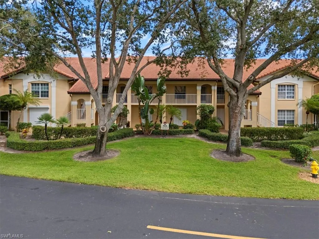 Welcome to your slice of paradise in Spanish Wells! This beautifully maintained 2 bedroom, 2 bathroom second-floor residence offers peaceful lake and golf course views in a prime Bonita Springs location. The light-filled open layout features vaulted ceilings, neutral flooring, and a kitchen with breakfast bar seating. The spacious primary suite includes a walk-in closet, dual vanities, and a private lanai entrance overlooking the serene water view. Enjoy morning coffee or evening sunsets from the screened lanai surrounded by tropical landscaping. Additional highlights include a detached one-car carport. Costa Mesa is a quiet, well-kept community within the gated Spanish Wells Golf & Country Club, offering optional golf, tennis, fitness, and social memberships. Just minutes to world-class beaches, shopping, dining, and downtown Bonita or Naples.