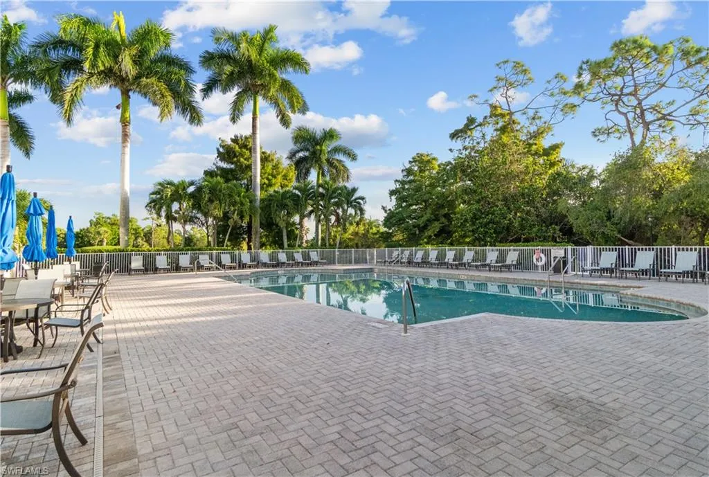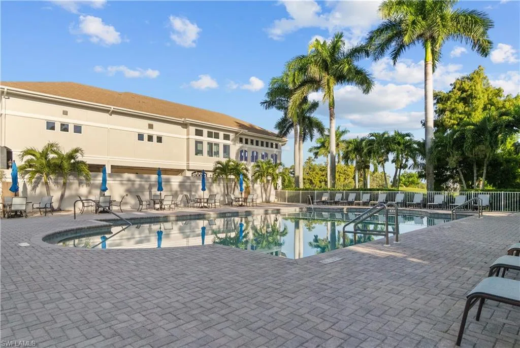 Step outside to backyard oasis, complete with solar heated pool—perfect for year-round enjoyment. Here you’ll experience the view of the 17th green and an inspiring sunrise! The community grounds feature beautiful mature trees and abundant wildlife, including the unique roseate spoonbill.
