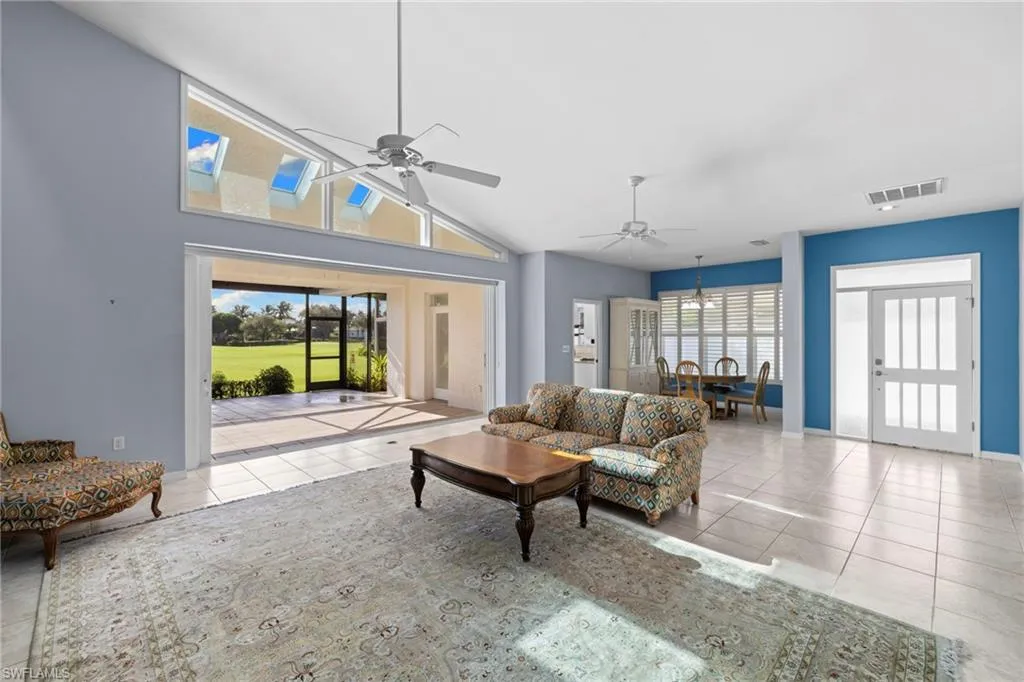 Spectacular golf course views from this inviting 3-bedroom, 2-bath villa located in Windstar on Naples Bay! This spacious residence features high ceilings and an open layout that flows to a large screened lanai overlooking Windstar’s fourth fairway, creating a comfortable setting filled with natural light. The primary suite includes a private patio—ideal for morning coffee or quiet relaxation. Additional features include impact windows and doors, and a two-car attached garage with a long brick paver driveway and side walkway. With only 16 villas in the community, residents enjoy a peaceful environment along with a heated pool, tropical landscaping and much more!