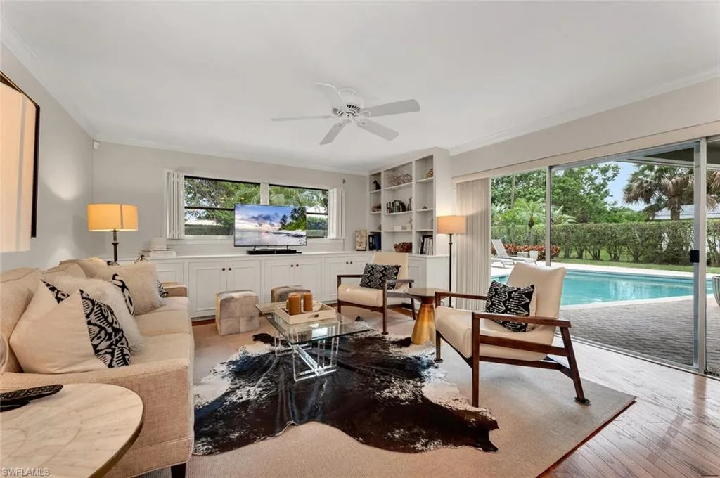 Spectacular find! Beautifully updated & meticulously maintained 4-bedroom 3-bath one level home. Located in the SAFE FEMA “X” zone. Very Large .42 Acre lot on Crayton Road. Just south of Mooringline Dr. Old growth trees and native plants encompass your private retreat. Hidden private respite in the heart of Naples. Over 2400 sq ft of light & bright, comfortable, quiet, living. Updated kitchen, spacious living room, family room, den, 3 guest bedrooms, 3 full baths, with spacious master suite. Tranquil covered outdoor pool, deck, and entertainment area with stunning park-like yard. Refresh in nature’s beauty. Plenty of room for your pets to roam. Harvest your mature Mango & Lemon trees. One of the few properties in The Moorings with no overhead power lines. Centrally located with short stroll to Moorings Beach Park for stunning sunsets, a dip in the Gulf, or picnic lunch. Minutes from Old Naples, Venetian Village, Waterside shops, Mercato or Artis-Naples. Dreams do come true – Bring your best offer!
