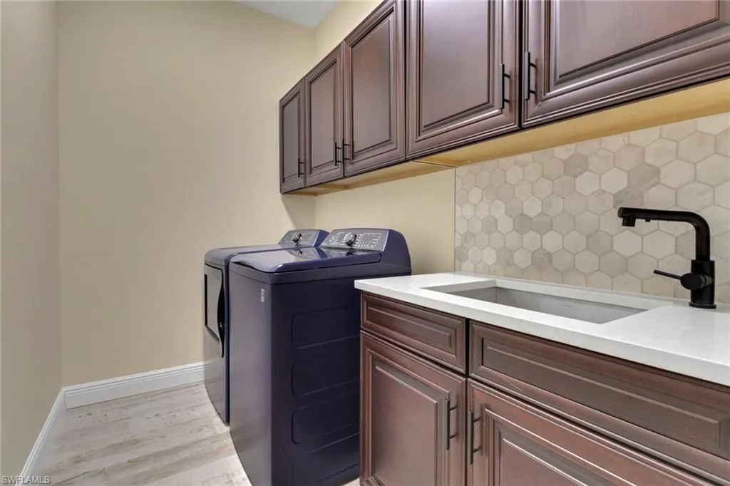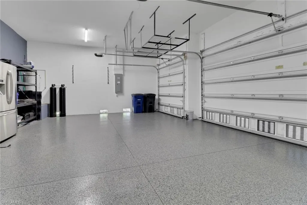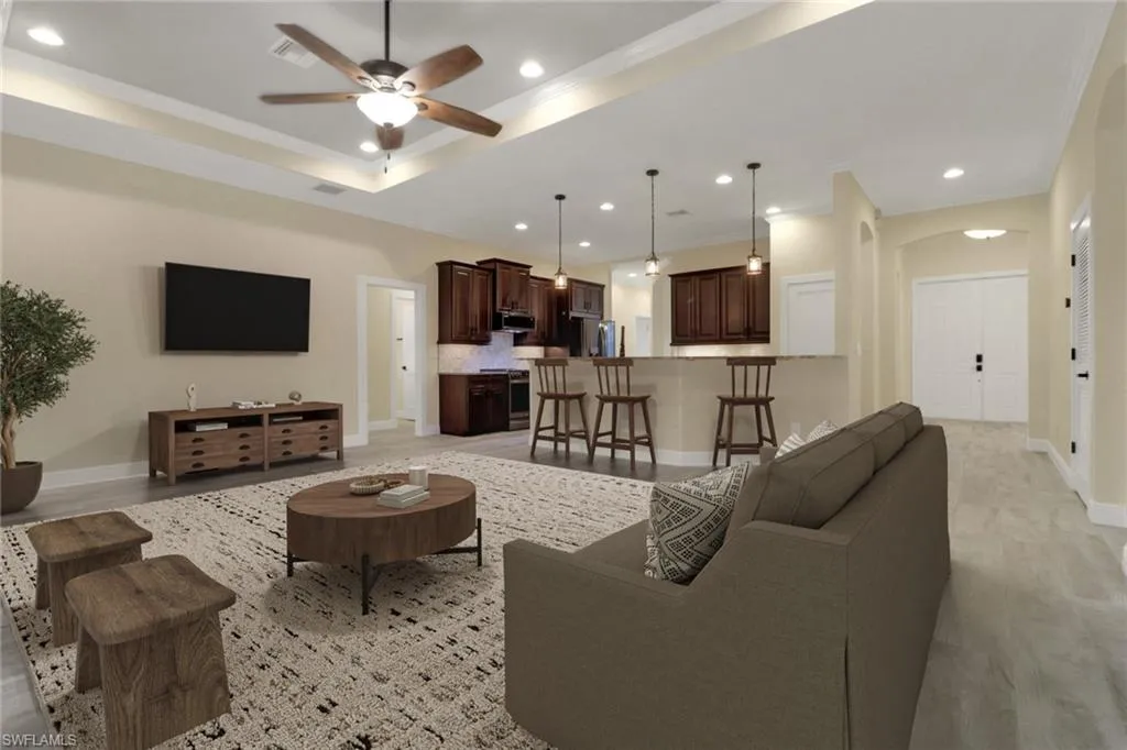 Newly updated and impeccably maintained, this home in the sought-after community of Catalina Isles offers the perfect blend of modern comfort and timeless design. A 2023 metal roof with a barrel tile appearance crowns the residence, while impact-rated windows and sliders, a replaced HVAC system, and added insulation ensure lasting efficiency and peace of mind. Inside, the home features 5¼-inch baseboards, plantation shutters, and a stunning kitchen with exotic countertops, an undermount sink, tile backsplash, and a black stainless steel appliance package. The owner’s suite has been completely reimagined with a breathtaking glass-enclosed shower, a Roman soaker tub, and dual vanities. A separate laundry room includes a premium washer and dryer set, additional cabinetry, and a utility sink for convenience. The freshly painted interior (2025) opens to a large screened lanai overlooking a fully fenced yard with lush landscaping and no-see-um screening for year-round enjoyment. Additional upgrades include a whole-home water filtration system, an epoxied three-car garage with overhead storage, and a recently repainted exterior. Catalina Isles residents enjoy a renovated clubhouse, community pool, fitness center, and playground, with internet, cable, and lawn care all included in the low HOA fees. Financially strong and well-managed, Catalina Isles is one of the few communities in Southwest Florida to have reduced HOA dues thanks to exceptional reserves.