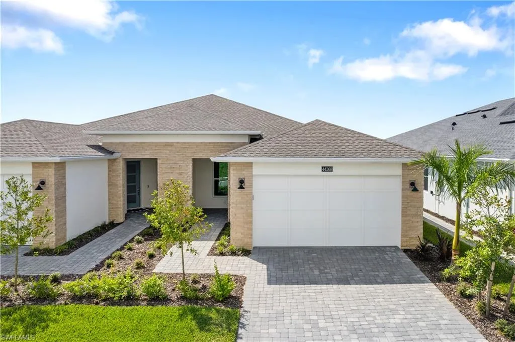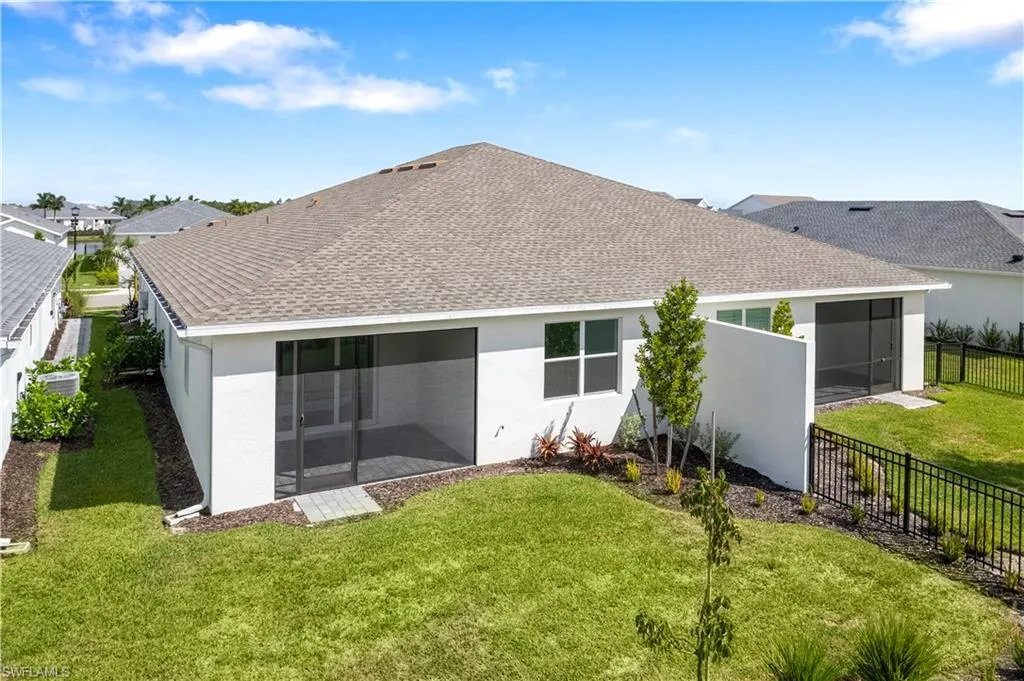 Discover the ultimate in Florida living with this gorgeous paired villa, thoughtfully designed and newly built in one of America’s first solar-powered towns. Nestled in a thriving 55+ neighborhood of Babcock Ranch, this elegant single-family home blends modern luxury, comfort, and carefree living. Step outside and embrace the Florida lifestyle with a southern-facing backyard designed for relaxation and entertaining. Enjoy your screened-in covered lanai with pre-plumbing for your future outdoor kitchen, and plenty of backyard space to add a pool after closing! Inside, the open-concept floor plan is bright, airy, and ideal for hosting. The designer kitchen is a true culinary centerpiece, showcasing quartz countertops, abundant, soft-close cabinetry, a suite of stainless steel appliances, natural gas cooktop, and a sleek hooded vent—perfect for both everyday meals and entertaining guests in style. The spacious primary suite offers tranquil backyard views and a luxurious en suite bath complete with dual sinks, quartz countertops, and a luxe walk-in shower. Complementing this retreat, a comfortable guest bedroom, stylish full guest bath, and an enclosed den or home office provide added versatility—perfect for creating space for work and hobbies. Crafted with quality and peace of mind in mind, this home includes hurricane impact glass windows and doors, energy-efficient construction to current code, and a comprehensive builder warranty. Just a short walk away, the exclusive 55+ resort-style amenity center awaits—featuring a stunning clubhouse, sparkling pool and spa, state-of-the-art fitness center, pickleball and tennis courts, putting green, golf simulator, yoga and event lawns, and so much more. Ask the sales consultant about current incentives and special financing rate buydown opportunities! See MLS supplements for floor plan and interior design package details. Lot 4720.