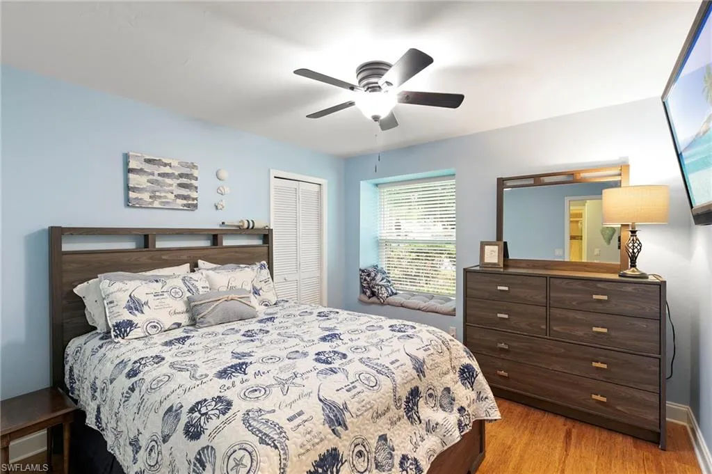 Inside, all 3 bedrooms showcase rich wood flooring, while the primary suite offers a dual vanity and a generous walk-in shower. This home also features hurricane impact windows and hurricane shades (2024), providing peace of mind and energy efficiency. Additional highlights include a new A/C (2022), new electrical panel (2023), tile roof, two-car garage, and beautifully landscaped grounds that enhance the home’s curb appeal.