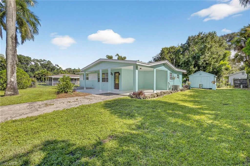 This updated North Fort Myers home blends classic charm with modern upgrades. Features include a remodeled kitchen with solid quartz countertops, brand new appliances, and large newer windows that fill the space with natural light. The home offers two bedrooms plus a large den that could easily be converted to a third bedroom or dining area, a large pantry, and a spacious laundry room with extra storage. Tile flooring throughout. Situated on an oversized lot with mature landscaping — including trees from the historic Edison & Ford Estates – a 12×16 storage shed, and plenty of room for entertaining or expansion. Conveniently located between Fort Myers and Cape Coral with quick access to shopping, dining, and medical facilities. Move-in ready and easy to maintain – schedule your tour today!