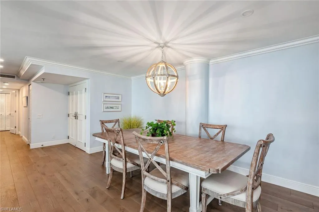 Welcome to your coastal retreat on the 14th floor, where luxury meets the serene beauty of the Gulf of Mexico. This exquisite beachfront condo has been beautifully updated and is being offered fully furnished. Step inside and be greeted by the warmth of white oak flooring that guides you through the open floor plan seamlessly connecting the living, dining, and kitchen areas, creating an inviting atmosphere for relaxation and entertainment. Floor-to-ceiling windows frame breathtaking views of the azure Gulf waters, bathing the residence in natural light. The inviting kitchen showcases an expansive island with seating for six, solid-wood cabinetry offering ample storage, and premium Monogram appliances. Retreat to the private owner’s suite, and enjoy your own private balcony, large walk-in closet, and spa-like bathroom featuring a walk-in shower and dual vanities, all finished with elegant tile and natural stone selections. Two additional bedrooms provide ample space for guests, each offering their own private oasis with views of the Gulf. The accompanying bathrooms are thoughtfully designed with modern fixtures and elegant finishes. Savoy residents enjoy a 24-hour lobby attendant, a large pool area, fitness facility, within steps of the beach and just minutes to the shopping and dining at Venetian Village and Park Shore Marina nearby. Don’t miss your opportunity to experience Naples beachfront living at its finest.