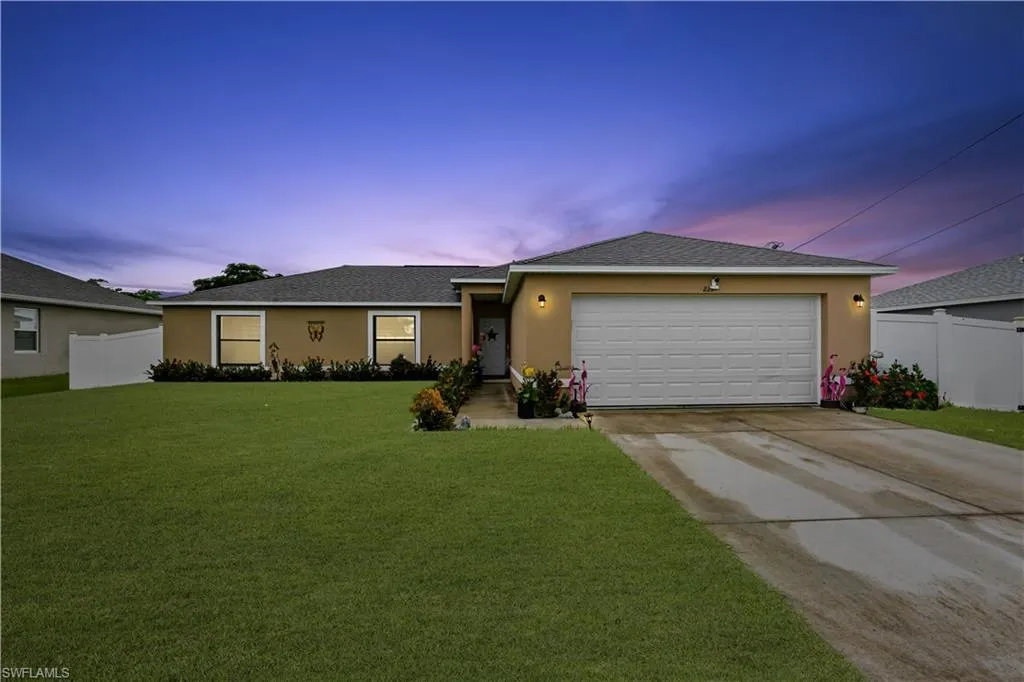 Welcome to your Southwest Cape Coral retreat! This beautiful 3-bedroom, 2-bath home offers 1,502 square feet of comfortable living in one of the most desirable neighborhoods in SW Cape Coral. NOT IN A FLOOD ZONE!! You’ll love the bright, open floor plan featuring a spacious living area, modern kitchen, and split-bedroom layout for added privacy. Step outside to your fenced backyard — perfect for kids, pets, or entertaining under the Florida sunshine. The neighborhood’s convenient location means you’re close to shopping (Farmer Joe’s), dining, parks, and Cape Coral’s best schools. Whether you’re a first-time homebuyer, downsizing, or looking for a vacation retreat, this home checks every box. Low assessments.