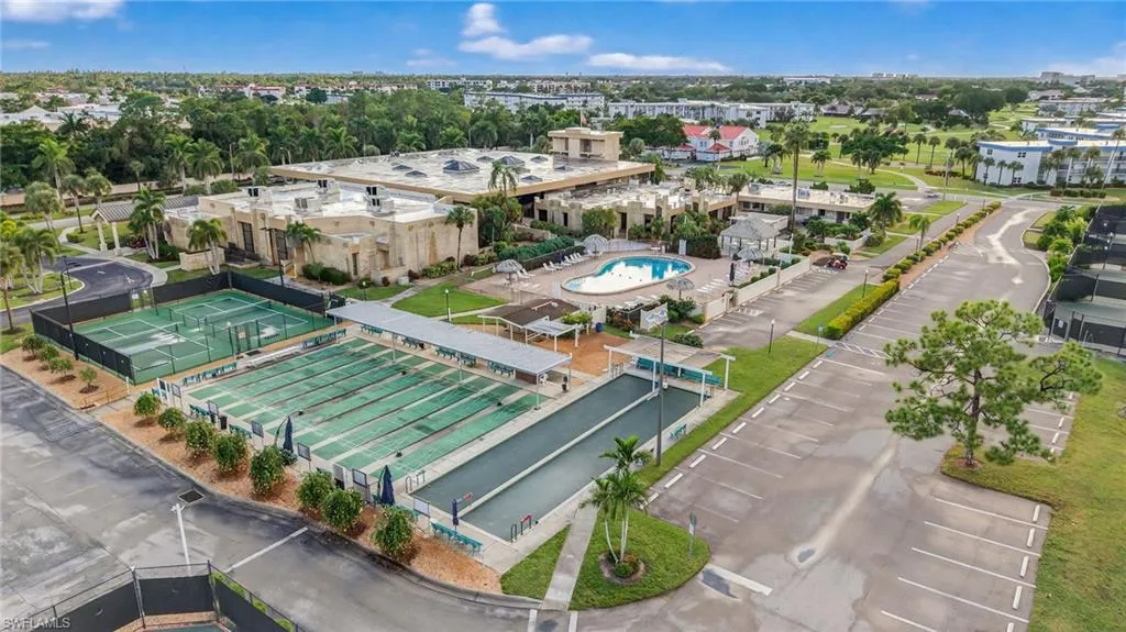 Resort-style amenities abound: an executive 18-hole golf course, 6 tennis courts, pickleball, shuffleboard, an auditorium for dinners and dancing, on-site “Tee Room” restaurant, a robust rec department, monthly event calendar, and 24/7 guarded gate. All in a prime location close to the airport, top restaurants, shopping, and plentiful local entertainment.