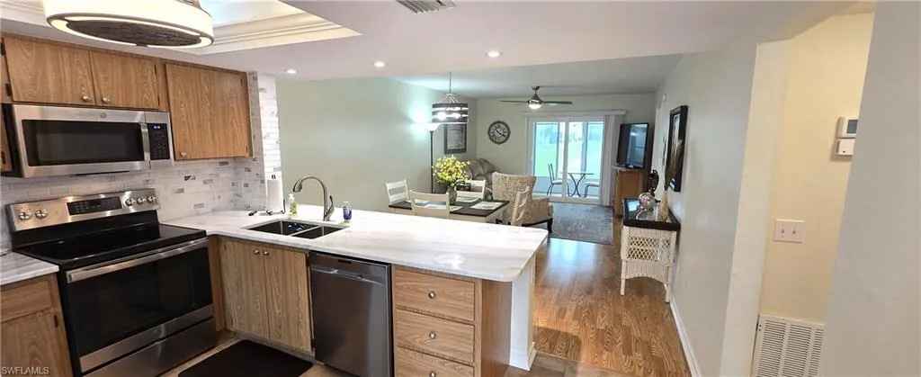Beautiful turnkey lakefront first floor condominium in Lake Edge Estates. This immaculate 2 bedroom, 2 bathroom condo offers new stainless steel appliances in the kitchen and front loading Whirlpool washer and dryer in laundry room. The usual condo items are new or replaced; impact resistant windows, roof, A/C, and water heater. This community offers two pools, a pavilion, pier, picnic area with grills. Only minutes to Downtown Punta Gorda, Charlotte Harbor, Sunseeker’s Resort, Fisherman’s Village, shopping, restaurants, boating and fishing, and so much more.