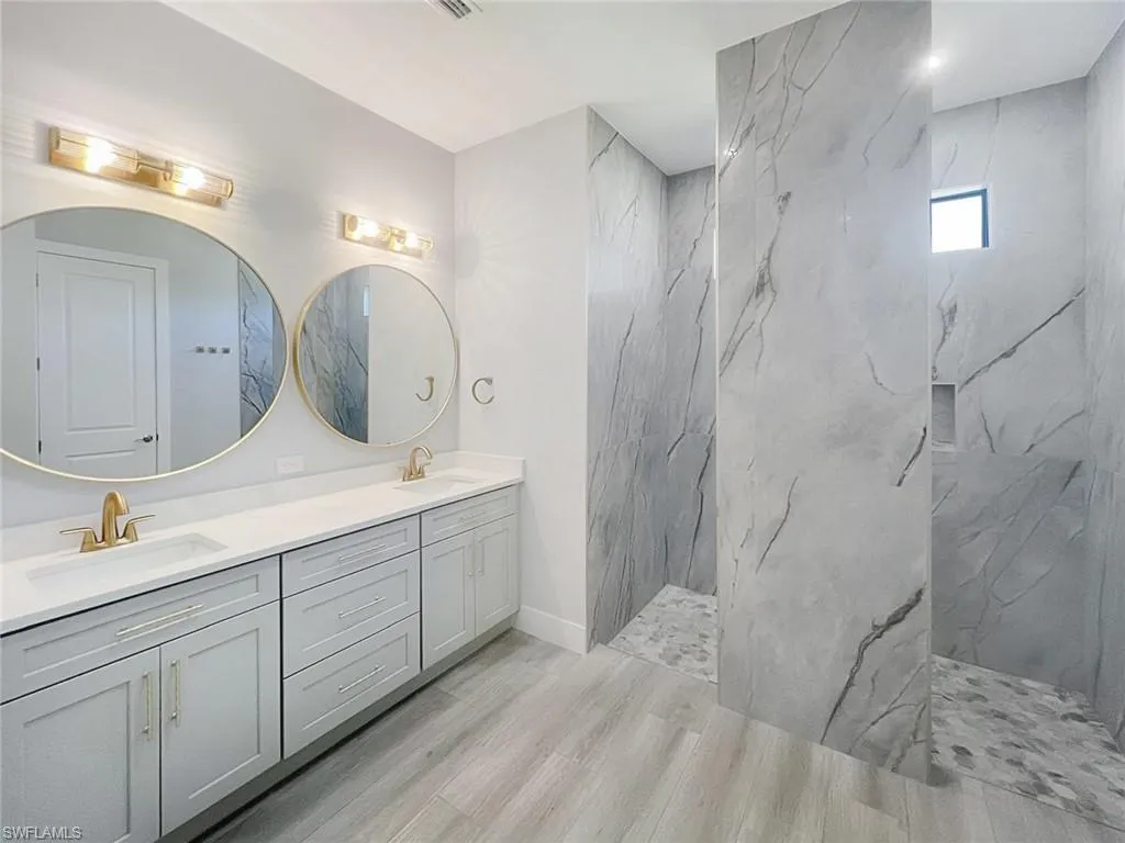 Unique, Upscale Brand-New Home in the Most Desirable Area of Lehigh Acres. This one-of-a-kind home truly stands out from the rest in the neighborhood. Step inside and you’ll immediately notice the thoughtful design, high-end finishes, and modern upgrades throughout, including an exclusive enclosed wine wall. A chef’s dream kitchen with a spacious island, premium appliances, upgraded cabinetry, and designer fixtures. Beautiful ceramic plank tile flooring runs seamlessly through the entire home, paired with upscale lighting and ceiling fans in every room. The master bedroom has two separated walk-in closets, and bathroom features a stunning double-entry shower with sophisticated tile, dual vanities with gold fixtures, and custom cabinetry, guest bedroom has also a walk-in closet. The versatile den provides the perfect space for a home office or cozy family gatherings. Additional highlights include French-style front entry doors for a grand welcome, hurricane-impact windows and sliding doors for safety, energy efficiency, wall texture in entire house, and peace of mind—no shutters needed. Laundry room with washer, dryer, cabinets, a utility sink and a stylish epoxy-finished 2-car garage floor complete the full up-scale home. An extended brick lanai is perfect for entertaining and offers room to create your dream outdoor kitchen. The backyard also has plenty of space to add a pool. Classic paver driveway and inviting curb appeal. This home is truly a step above the rest—schedule your private showing today and experience the difference!