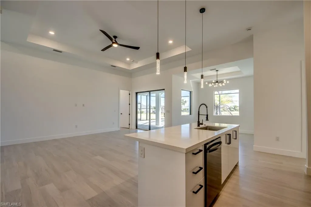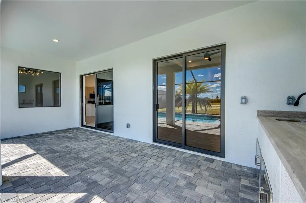 Discover modern coastal living in this new construction 4-bedroom, 3-bathroom home located in the coveted Old Burnt Store neighborhood right next to the 7 islands! Fully equipped with cutting-edge Smart home technology, this residence showcases an array of unique upgrades that set it apart. The 8-foot double doors at the entrance add an elegant touch, as you step into the house you will appreciate the attention to details and the volume ceilings equipped with a 72″ fan giving it a grand view right as you arrive. The open concept design allows you to entertain while you set up for the festivities. Quartz tops eat-in Island kitchen is ready for the chef inside of you to shine, or have a family sit down meal in the dining area. All the finishes in this home were used with style in mind, from the quartz countertops and tile floors to the soft-close cabinets and extra-high tray ceilings. The primary suite features expansive room, with two walk-in closets, dual sink vanity and frameless glass shower enclosed decked out with euro shower tower w/body sprayer and rain fall head. the other three bedrooms include a jack and jill bathroom and 3rd full bath that can be used a pool bath. Take in the sun and unwind in the heated saltwater pool, featuring a fountain and ledge lounger, promising endless relaxation. covered patio, complete with an outdoor shower and a summer kitchen ready for the cookouts and memories. 2 car garage has been finished with epoxy garage floors. Nestled on a serene street in a prime location, this exquisite home is ready for you to experience the best of Florida living! Don’t miss your chance to call this remarkable property your own.