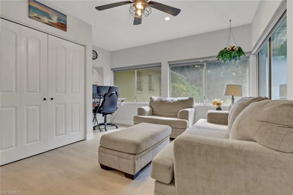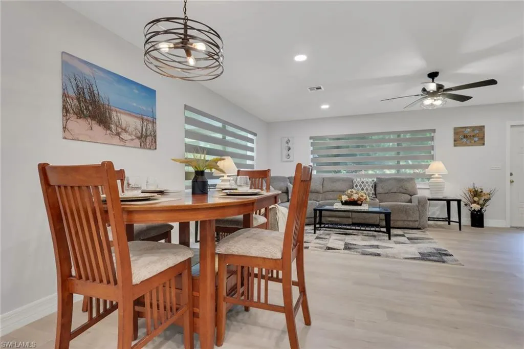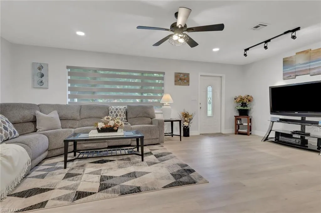 This beautifully renovated 3-bedroom, 3-bathroom residence with in-law suite and Kitchenette sits on a spacious half-acre lot in one of Southwest Florida’s most desirable—and best-kept secret—neighborhoods. Lovingly owned by the same family for over 30 years, this home has been thoughtfully transformed with over $200,000 in professional upgrades and improvements over the past five years. Completely gutted and rebuilt from the ground up in 2021, the home features brand-new electrical and plumbing systems, offering modern comfort and long-term peace of mind. Step inside to a bright, open-concept living area filled with natural light, ideal for entertaining or quiet nights at home. The gourmet kitchen is a chef’s dream, with Quartz countertops, stainless steel appliances, and plenty of cabinet space. Each of the three bedrooms is generously sized and offers privacy and comfort, including a luxurious master suite with a beautifully updated en-suite bathroom. All three bathrooms have been fully renovated with contemporary finishes and high-end fixtures, showcasing a cohesive, modern style throughout. In Law Suite Bathroom was completely renovated in July 2025. Every inch of the home has been updated from floor to ceiling. The windows are dressed with $20,000 in custom blinds and treatments, and the entire home was furnished in 2021 with new furniture—negotiable for buyers seeking a turnkey option. The seller will be taking personal items, but much of the furniture can be included if desired. Step outside into your peaceful, private backyard—a nature lover’s paradise, Including a new Lania completed in July 2024. The rear yard is fenced for privacy and pets, and the property line extends beyond the fence, providing even more room to relax, garden, or entertain in the Florida sunshine. Whether you’re grilling with friends or enjoying your morning coffee under the palm trees, the outdoor space offers endless possibilities. Located just minutes from world-renowned beaches, parks, top-rated schools, shopping, and dining, this home delivers the perfect mix of serenity and accessibility. Homes in this neighborhood don’t come up often—people love it here and tend to stay. This is truly a move-in ready home, built to impress and ready to welcome its next chapter. Schedule your private showing today and don’t miss your chance to own a slice of paradise.