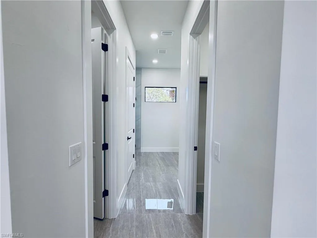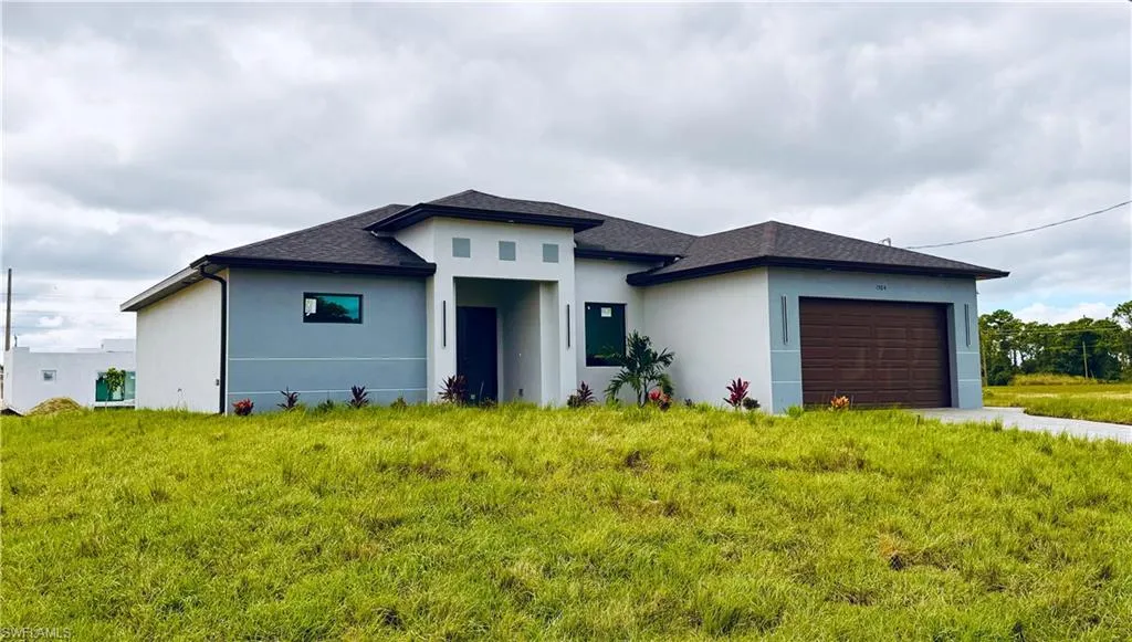 Brand-New 2025 Construction – Modern Living on the Water. Step into stylish Florida living with this brand-new 3-bedroom, 2-bathroom home, complete with a dedicated den/office, laundry room, and spacious 2-car garage. Thoughtfully designed with impact-resistant windows and doors, this home offers peace of mind and long-term durability—and it’s not located in a flood zone. Inside, you’ll love the open-concept great room with soaring 8-foot interior doors and abundant natural light. The modern kitchen with stainless steel appliances. The den offers a perfect work-from-home setup or flexible space, while the laundry room and built-in custom wood closets provide plenty of storage. Enjoy luxury finishes throughout, including modern lighting, premium flooring, and refined design details. Step outside to your lanai with an outdoor kitchen, ideal for relaxing or hosting guests while taking in tranquil canal views—perfect for enjoying the Florida lifestyle year-round.