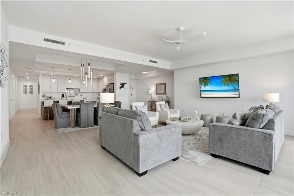 Step into elevated coastal living at the newly completed Grandview Condominiums, located within the exclusive Waterside at Bay Beach community on Fort Myers Beach. This brand-new, never-occupied residence offers approximately 2,414 square feet of Living Space with designer-selected interiors, tasteful furnishings, and captivating panoramic views of the Bay and Gulf.