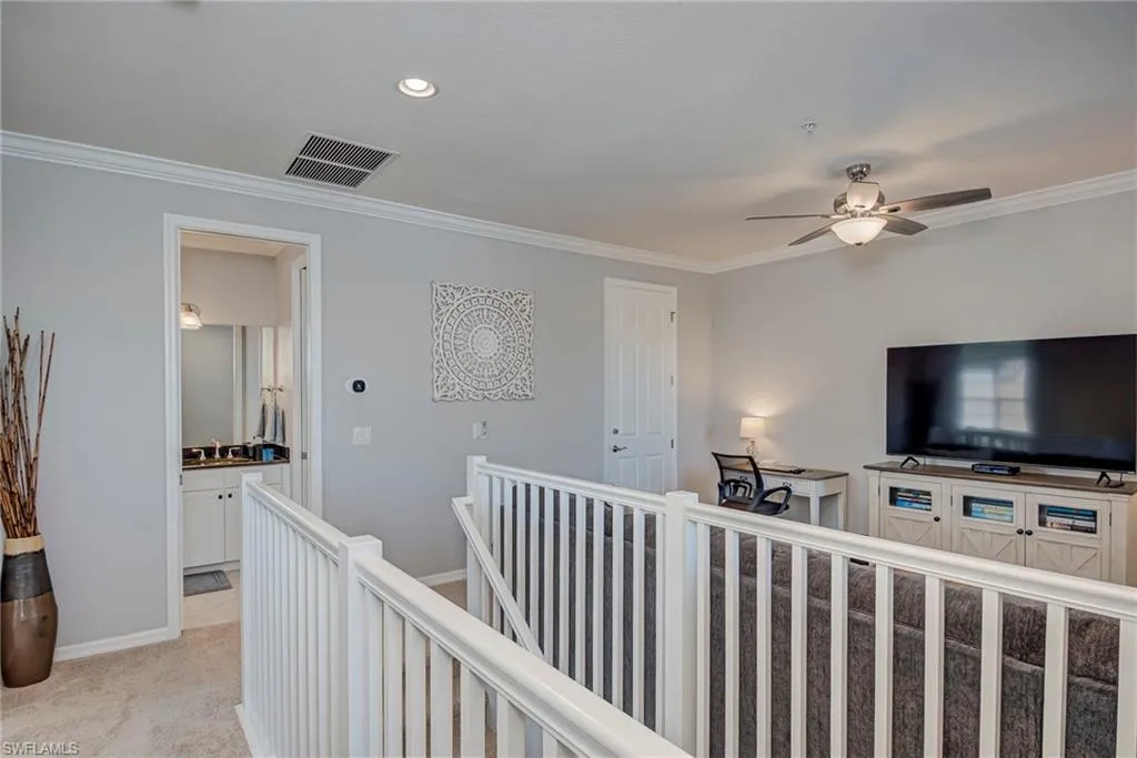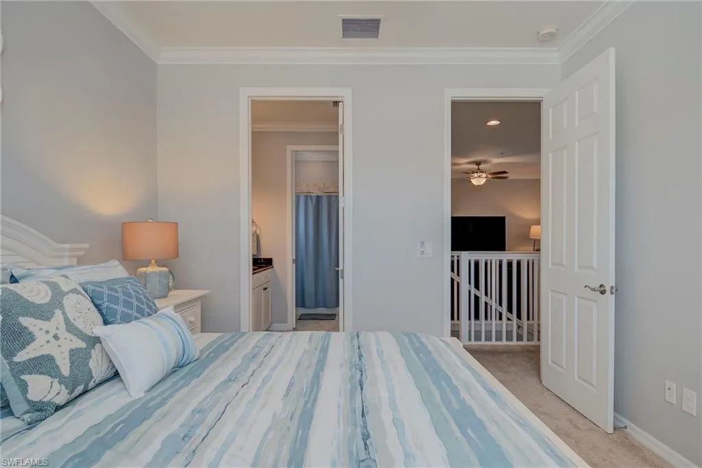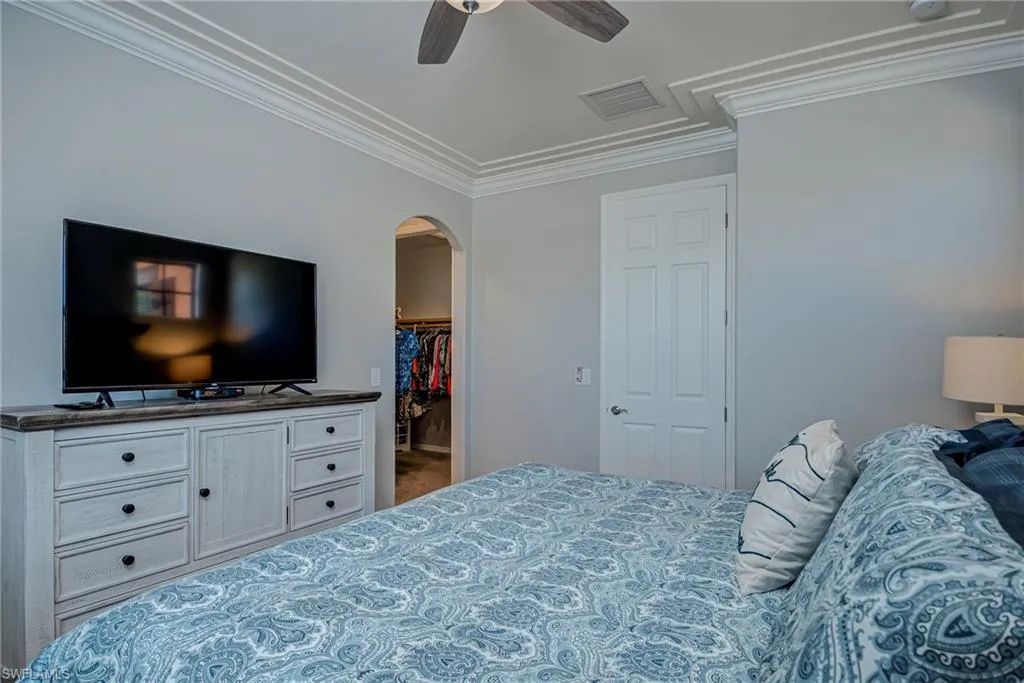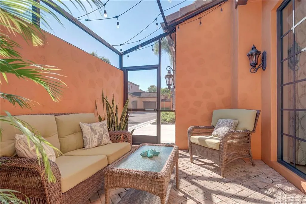 Beautiful and impeccably maintained, TURNKEY FURNISHED Castella Casita! This home is sure to impress, from the tasteful Florida Decor, coveted white cabinetry, crown molding, granite countertops, to the top of the line fixtures and lighting. The Castella features the third bedroom as an open loft area with a walk in closet. Great for guests! Screened lanai for enjoying the warm Florida breezes. Wonderful park views. This home is equipped with hurricane impact glass and doors as well as fire sprinkler systems, for added peace of mind. Newer HVAC system. NEW GOLF CART INCLUDED! All this in the award winning Community of Paseo! Relax by the RESORT STYLE POOL or enjoy a beverage at the TIKI BAR. Watch a game at the PUB or enjoy brunch at the BISTRO. Grab a friend and watch a movie in the cinema or work out in the FULLY EQUIPPED GYM. New lighted bike path will connect you to Lee County bike trail system. Enjoy a game of doubles on the 6 har-tru TENNIS COURTS or join in the fun at the PICKLE BALL COURTS!! Come enjoy the PASEO LIFESTYLE
