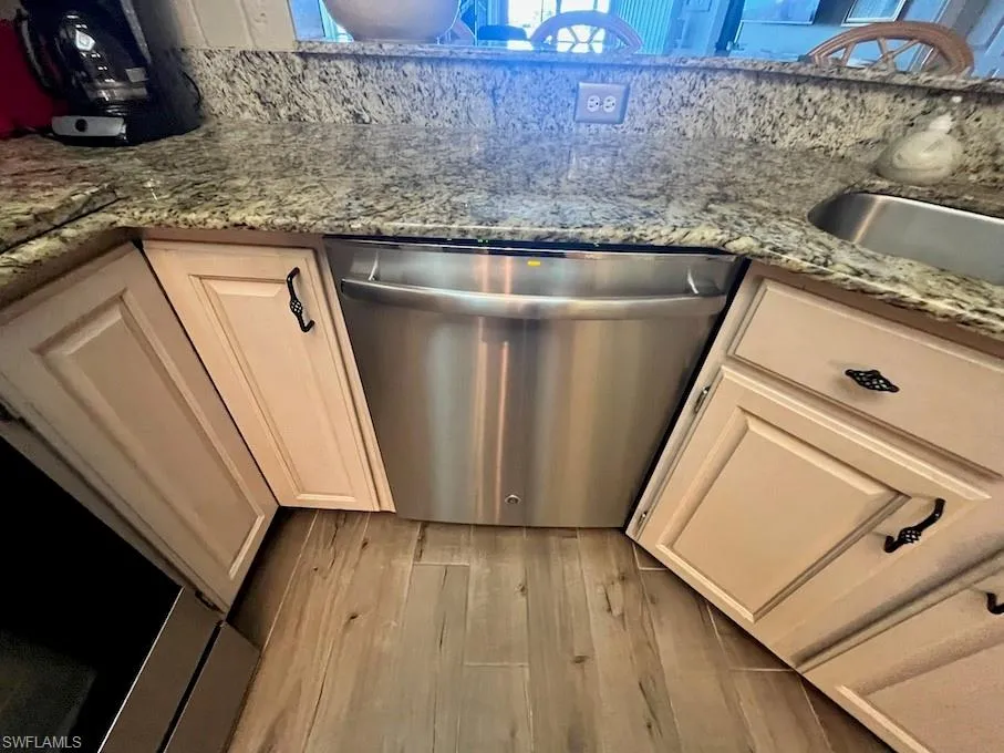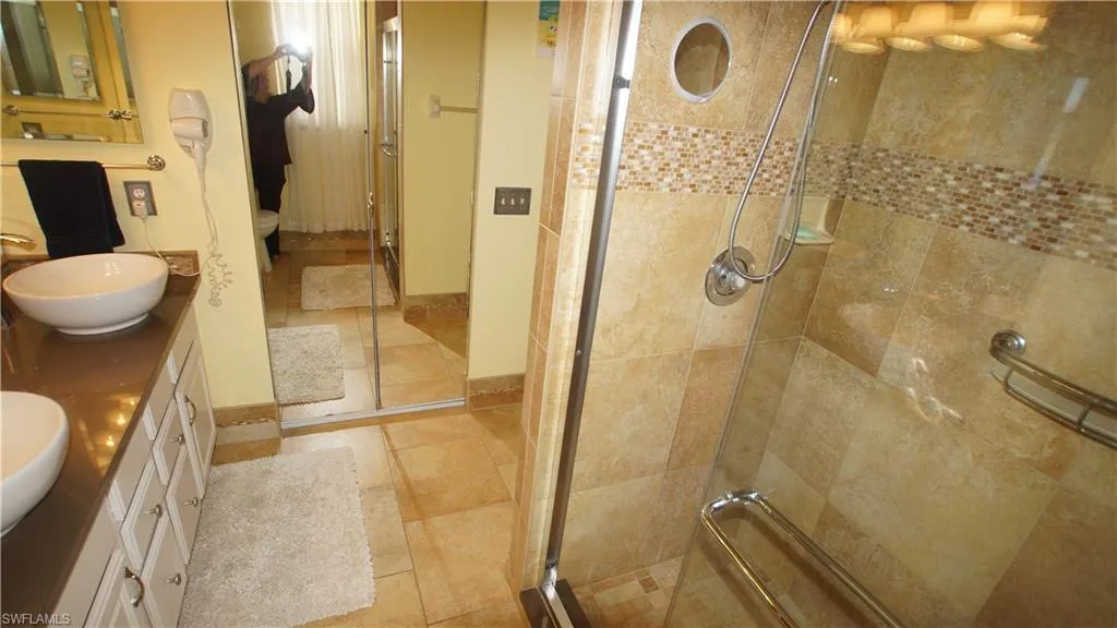end unit, located on a quiet cul de sac, offers peace and tranquility with gorgeous sunsets from the pool just steps away. Surrounded by Lakes & golf courses, this condo is only 3 miles from the beach. Lanai on front (sun set) & back Lanai (sun Rise). The condo features a Garage, additional storage room, there is always plenty of parking for visitors and residents. Also…updated tile flooring, newer kitchen wood cabinets, Granite counters, and newer bathrooms. Top of the line faucets, jetted tub, and Laundry room. The end units have large windows, that provides plenty of natural light. Also, electric shutters and accordion shutters offer easy protection during storms. Not on the beach or in a flood zone which helps to provide worry free ownership. The first-floor location is convenient and the decor is stunning – some furnishings will stay with the condo. The Golf condos offer access to a golf club membership, with the HOA owning the club and course. Membership is optional, giving you the flexibility to enjoy the amenities at your leisure. The community is fully fenced and gated, with 24-hour guard and timed checks for added security. There are 3 GATES, main with Guard, and a 2nd on Bonita Beach Road, and a 3rd gate on Old 41, this makes for easy access to Naples shops or north to Coconut Point Mall. Carrabba’s, Outbacks or starbucks and so much more! This condo truly offers the best of both Bonita Springs and North Naples. The seller is Intending to do a tax-deferred trade, contingent on finding a home near their children. Don’t miss out on this incredible opportunity to own a piece of paradise in Spanish Wells Golf community.