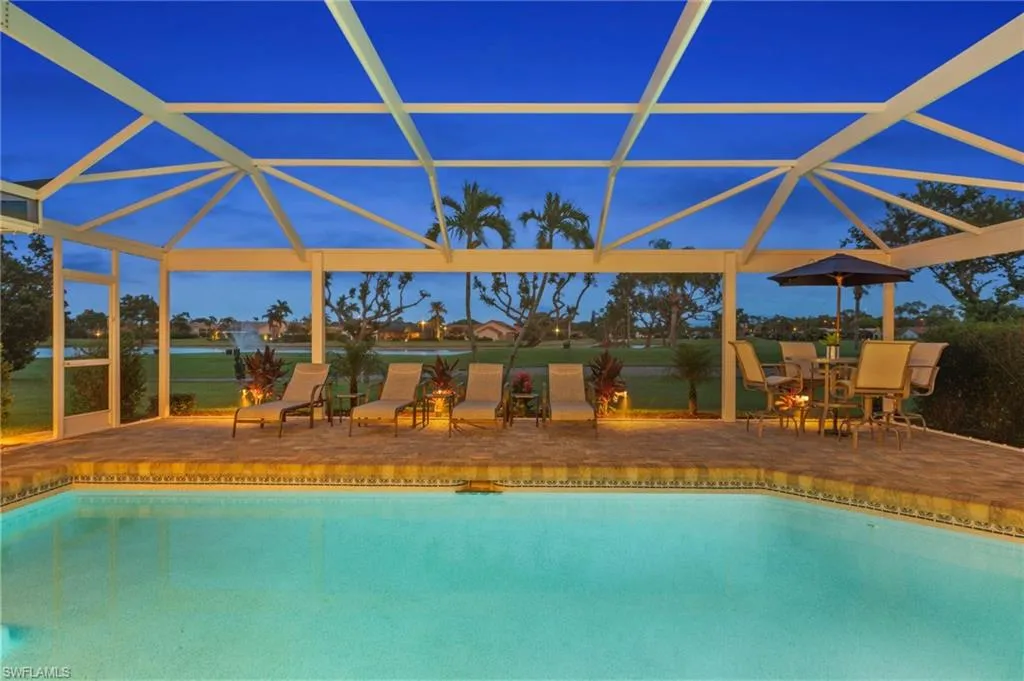 IMMEDIATE GOLF! Nestled in the heart of the prestigious Foxfire Golf and Country Club, this beautiful 3 bedroom, 3 bath home epitomizes Naples luxury living. Meticulously maintained and renovated, this home offers modern comfort and gorgeous golf and water views. Step inside to discover a bright and airy open concept layout, where each room flows harmoniously into the next. The interior boasts two living areas, each open to the large private screened lanai with pool, offering serene views of the Arthur Hill designed 27 hole championship golf course – a golfer’s paradise included in your bundled membership with immediate golf! A contemporary kitchen and breakfast bar, open to the great room with ship lap vaulted ceiling and recessed lighting, is perfect for casual dining or entertaining. The spacious livingroom has wood floors and a wall of sliding glass doors which fill the room with natural light. The primary suite has a generously sized ensuite primary bath, two separate sinks with marble vanities and ample closet space. Spacious laundry room with plenty of storage and immaculate garage, a bonus! Beyond the home’s beautiful interior, Foxfire’s high-end amenities elevate the living experience. Residents enjoy a 20,000 square foot clubhouse complete with fine dining, a casual grille room, a lively lounge and outdoor seating areas for social gatherings. Stay active with a state-of -the-art brand new fitness center, 3 Har-Tru tennis courts, 3 bocce courts and a swimming pool. Conveniently located just off Davis Boulevard, minutes to the upscale boutiques and dining of Fifth Avenue South, the iconic Naples Pier, and the pristine sugar sand Gulf beaches. Don’t miss this chance to own a slice of Naples’ coveted lifestyle – schedule a private showing today!