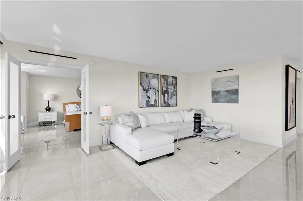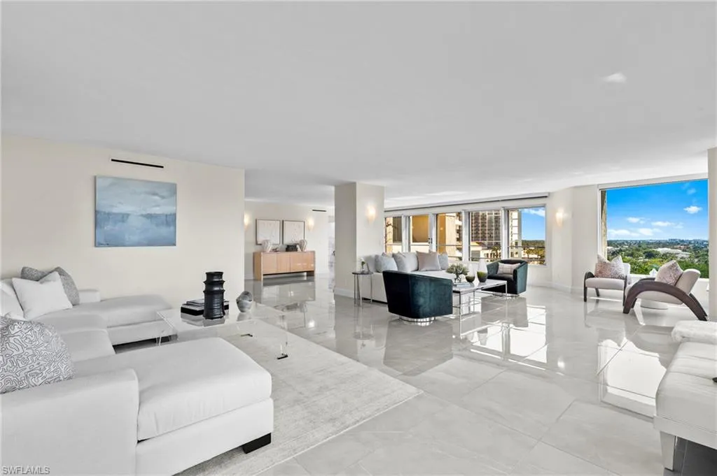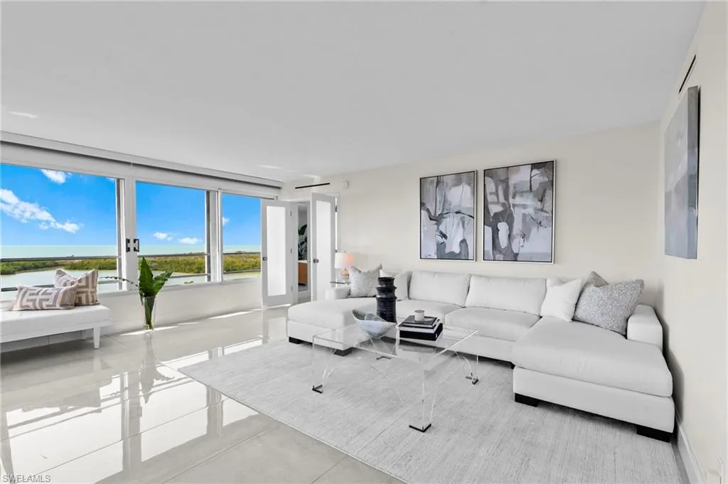 Experience the pinnacle of coastal living in this stunning, chic 2-bedroom, 2.5-bath condo located in The Heron at Pelican Bay. Offering panoramic Gulf and Bay views, this residence is the ultimate retreat for those who crave breathtaking sunsets and unparalleled luxury. Extensively renovated in 2019, it boasts a modern, sophisticated aesthetic with sleek, high-gloss European-style cabinetry, quartz countertops, Bosch appliances, and a central island perfect for casual dining. The contemporary kitchen is complemented by a subway tile backsplash, while oversized porcelain tile flooring and a soft white color palette create a sense of calm and elegance throughout the home. The floor-to-ceiling windows flood the space with natural light and provide an ever-changing masterpiece of water views, making this home a true showstopper. Whether you’re hosting guests or enjoying a quiet evening, this condo offers the perfect backdrop for any occasion. Situated in the boutique, pet-friendly building of The Heron—known for its iconic architectural style—this residence offers exclusivity with only 40 units. Building amenities include two guest suites, on-site management, a resort-style pool and spa, and a private gym. In addition to this luxurious living space, you’ll enjoy access to Pelican Bay’s world-class amenities, including two private beach pavilions with restaurants, miles of walking paths, tennis courts, pickleball, and endless fitness and wellness activities. You’ll also be just moments away from cultural experiences at Artis-Naples and the luxury shopping and dining at Waterside Shops and Mercato. Don’t miss this opportunity to embrace top-tier living in one of Naples’ most sought-after communities!