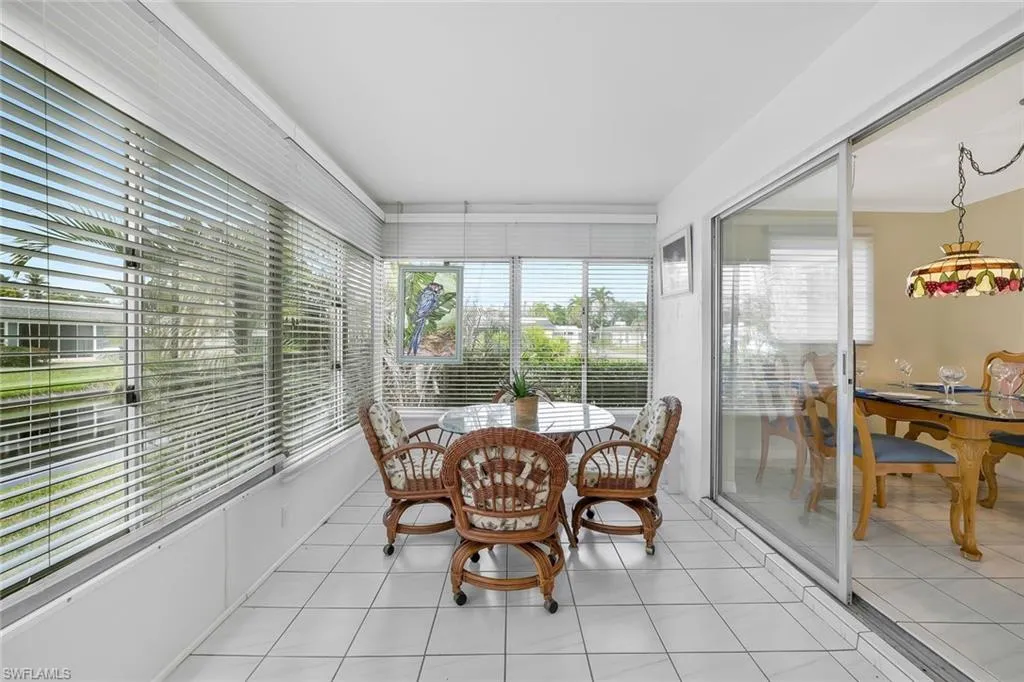 This bright, charming, renovated 2-bedroom + sun room, 2-bathroom villa offers 1,000 sq. ft. of thoughtfully designed living space. The kitchen boasts new stainless steel appliances, a walk-in pantry, and the home includes a separate laundry area and detached storage shed. Relax in the west-facing Florida room with stunning sunset views over a peaceful lake and lush landscaping or step outside to the cozy patio, ideal for unwinding. Set on the best lot in the community, this villa offers privacy, space, and serene surroundings. Royal Park Villas, a pet-friendly community, allows up to 3 rentals per year, offering flexibility and potential income. HOA fees cover water, irrigation, landscaping, and flood/wind insurance. Discover your paradise in Royal Park Villas, a hidden gem just minutes from Naples’ top attractions. Located 1 mile to Bayshore Arts District and Celebration Park and 1.5 miles to 5th Avenue South, you’ll enjoy world-class shopping, dining, and entertainment at your doorstep. Don’t miss this low-maintenance retreat, perfect as a year-round residence or seasonal getaway.