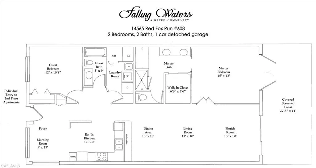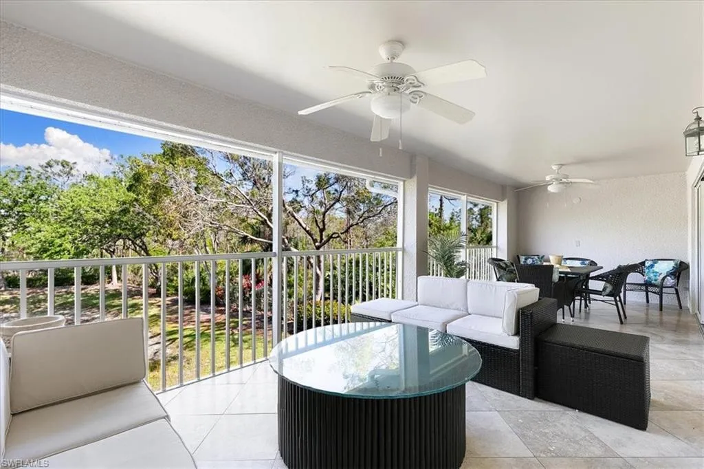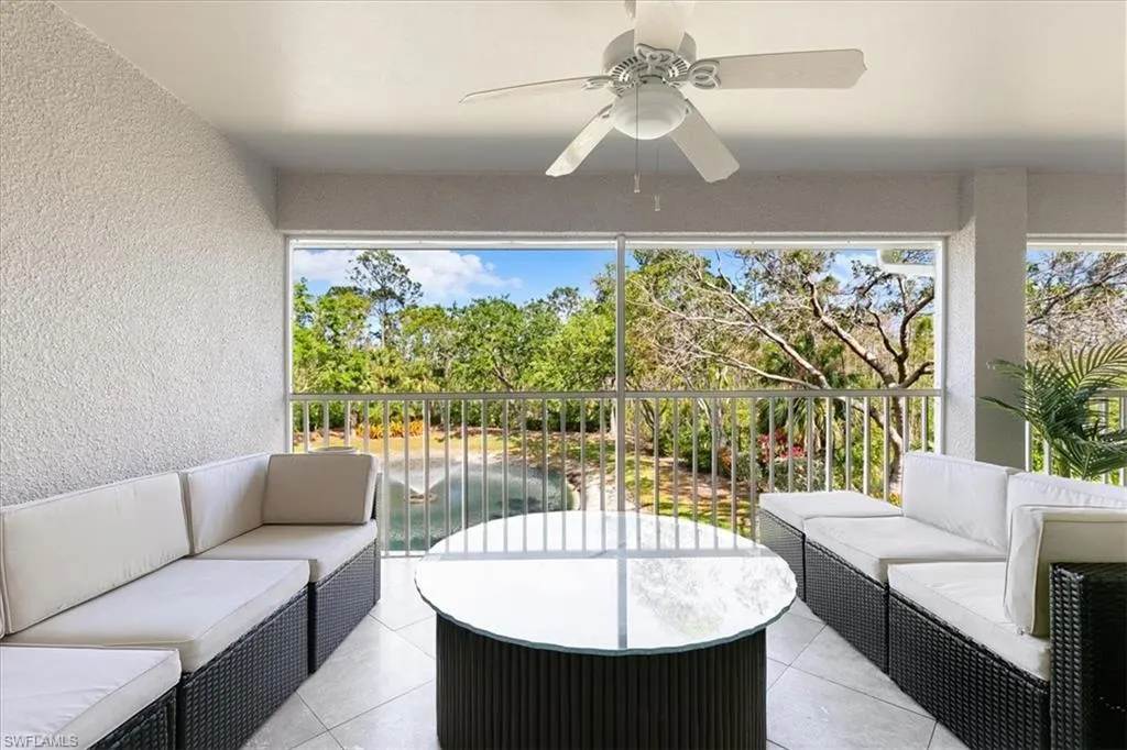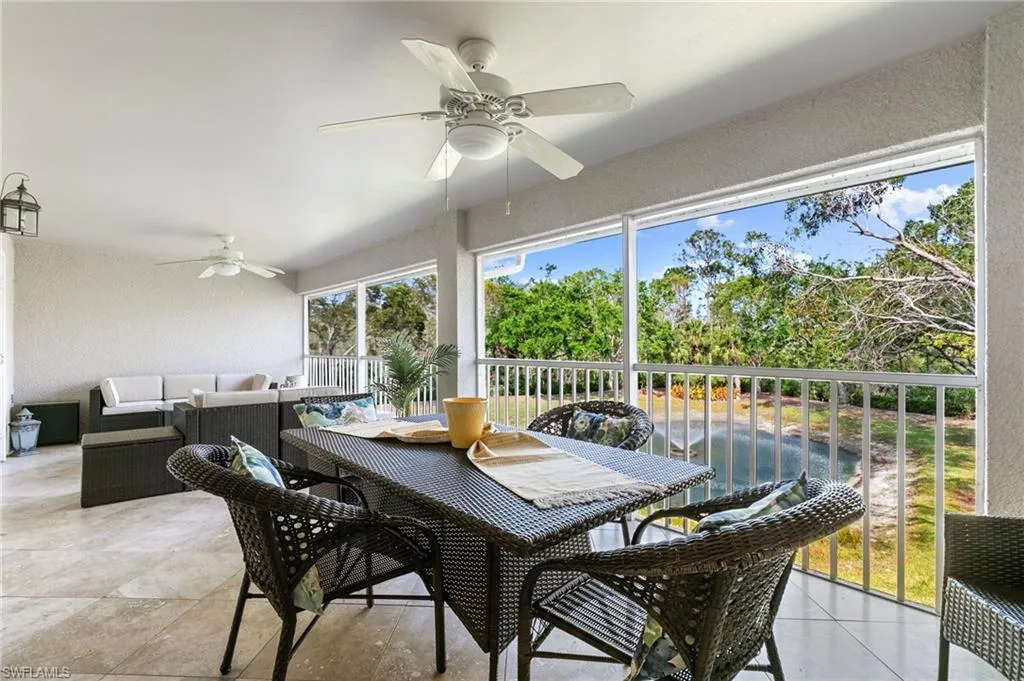 A perfect balance of comfort and luxury awaits in this beautifully turnkey furnished 2-bedroom, 2-bath condo nestled within Falling Waters North Preserve—a serene, boutique community ideally situated west of US-41. Perched on the second floor for enhanced privacy and soaring cathedral ceilings, this residence feels open, airy, and grand—bathed in natural light streaming through French doors and generous windows. The open-concept living and dining area flows seamlessly into a sleek eat-in kitchen, ideal for entertaining or quiet evenings at home. Pocketing sliders open to an expansive screened lanai that spans the full length of the condo. Here, tranquil woodland and fountain views create an idyllic backdrop for morning coffee or al fresco dining. The primary suite is a true retreat, offering private lanai access, a spacious walk-in closet, dual sinks, a vanity area, a deep soaking tub, and a glass-enclosed shower. The guest suite provides equal comfort and privacy, ensuring every visitor feels at home. Enjoy resort-style relaxation at the lagoon-shaped community pool, surrounded by lush tropical landscaping—a perfect spot to bask in the Florida sunshine. Located just minutes from Vanderbilt Beach, Mercato, and Coconut Point, this exceptional residence offers the coveted west-of-41 lifestyle: tranquil, elegant, and close to everything Naples has to offer.