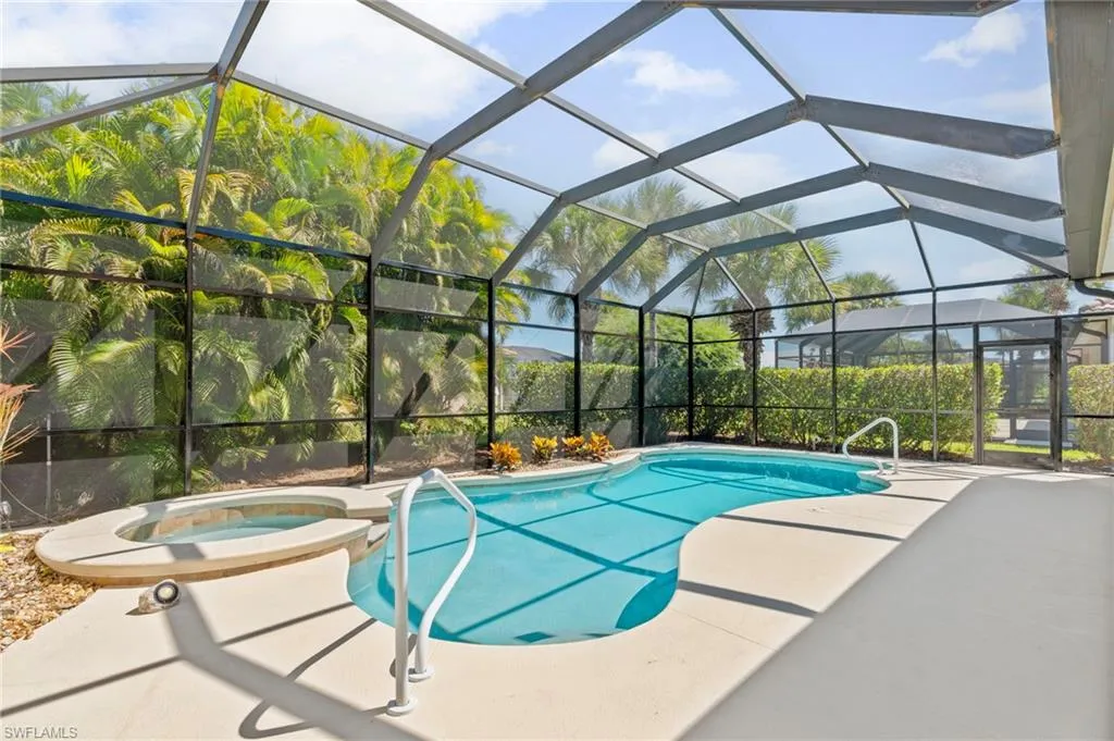 READY TO MOVE IN THIS BEAUTIFUL SINGLE FAMILY HOME WITH POOL AND SPA. Centrally located in the desirable Madison Park neighborhood with 3 bedrooms, living and dining room combination, eat in kitchen, 2 bath, 2 car garage. Granite counter tops, Stainless steel appliances are one year old, new A/C one month old, roof is 5 years, Water filtration and conditioning, alarm system, plantations shutters, Crown molding, hurricane shutters, Toto Toilets, a private screened-in lanai, perfect for outdoor entertainment. Low HOA Fees. No CDD. Not in a Flood Zone. Conveniently located 5 miles from downtown Naples, fine dining and our Naples Beautiful beaches.