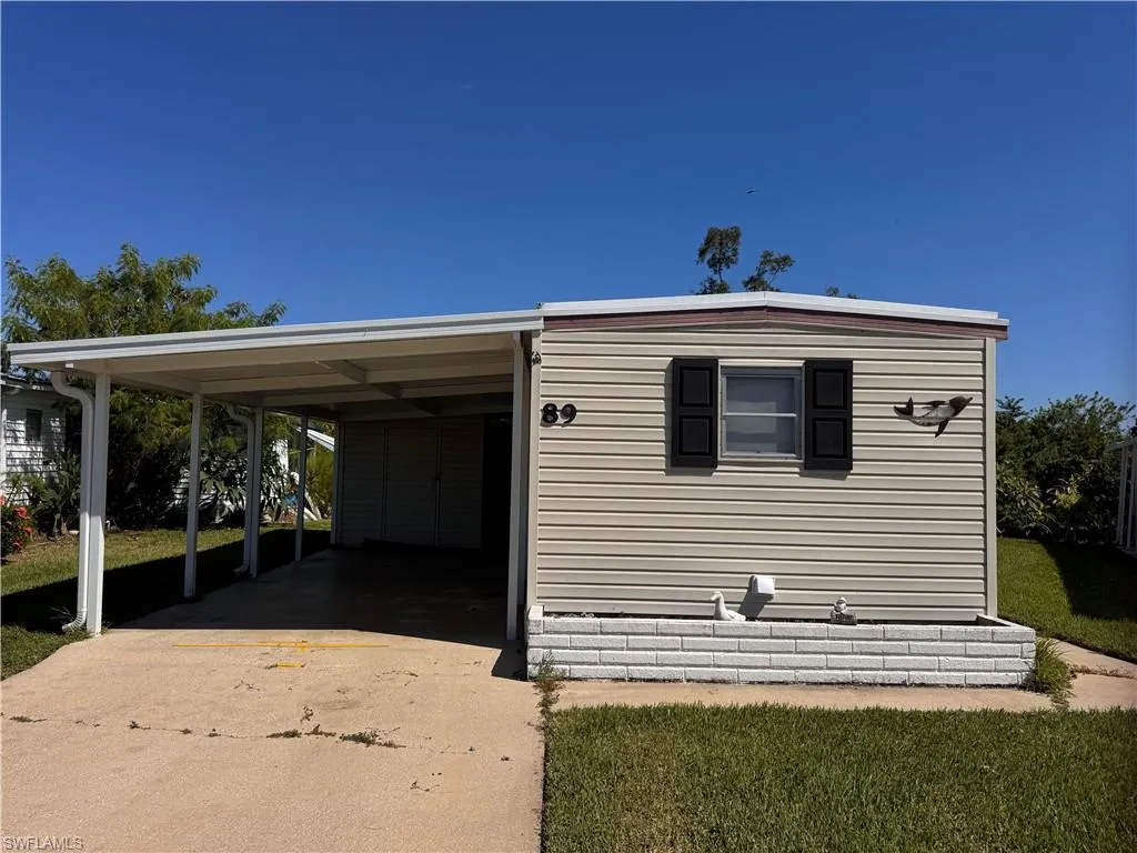 Priced to sell! Waterfront home in need of your personal touch and a bit of TLC! This turnkey one bed/one bath home has the laundry inside, remodeled walk-in shower in the bathroom, kitchen has eat-in dining space, and the living room with its tile flooring is spacious. New mini-split air conditioning in the living room and master. The home has 700 sq ft of living space and an additional 100 sq ft enclosed porch that looks right out onto the canal that flows in from the Caloosahatchee River. There is a boat dock with a lift in need of some TLC but was last known to be working. Opposite the home are serene tropical woods, ideal for retirement. Orange Harbor Mobile Home and RV Resort is a waterfront resident-owned 55+ community. The monthly maintenance fee of $406 includes water/sewer, trash, lawn care, fiber optics internet, two new pickleball courts, a heated pool and lots of other amenities in addition to a large clubhouse, two boat ramps, a community fishing pier, beautiful sunsets and more! Two pets are allowed with some dog breed restrictions, so be sure to review the rules. ESA animals are allowed. Price includes share for the lot and ownership in the community.
