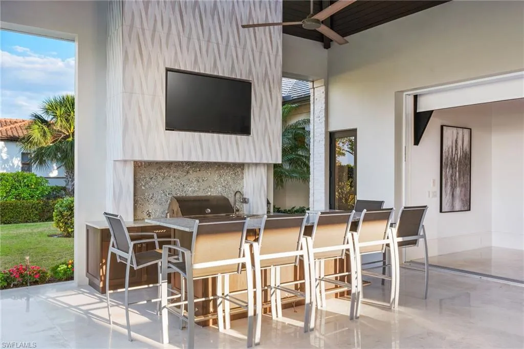 This is an opportunity to own a highly customized Diamond-built home complete with stunning water and golf views! The stylized architectural finishes combined with an immediate feeling of home give this residence an indescribable soul. The open floor plan is anchored by a sophisticated great room with custom built-ins and well-equipped wet bar including wine refrigerator, beverage drawers and dramatic back-lit countertops. The gourmet kitchen with top-of-the-line appliances offers two islands to accommodate entertaining, dining and prep. Luxurious bedrooms are located within a split floor plan to allow privacy for all, and the spacious primary suite is an oasis with two custom closets, two water closets, spectacular shower space and up-to-the-minute finishes. Step outside for year-round enjoyment of the outdoor living space with covered sitting and dining areas, full outdoor kitchen, custom saltwater pool/spa with water feature, a fire pit, built-in fireplace and, of course, spectacular views. Additional features include hurricane rated windows and doors, retractable lanai screens, 4 garage spaces plus golf cart parking and courtyard. Amenity-rich Quail West, a hidden gem in North Naples, holds the exclusive Platinum Club® status which is the pinnacle of recognition for Private Clubs around the world recognizing the top 1% globally. The world-class amenities include two championship golf courses, elegant clubhouse with a variety of dining options, a racquet sports complex, bocce courts, state-of-the-art fitness center, full-service salon/spa and unending activities for every interest.