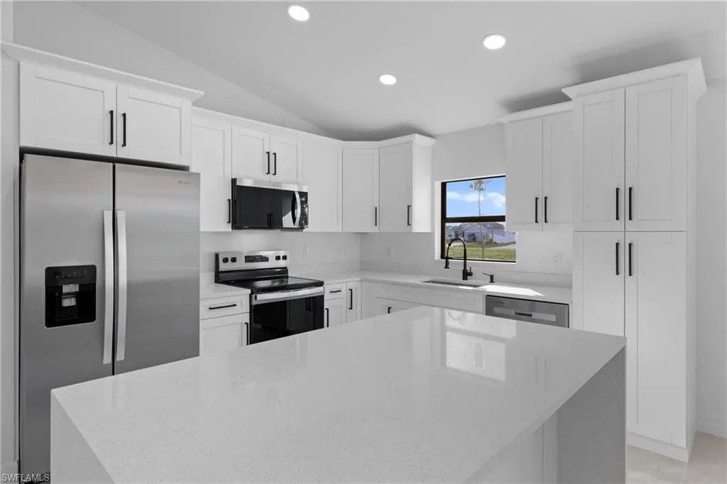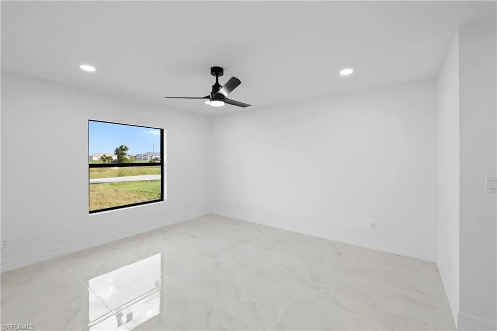 This brand new home in Cape Coral features 3 bedrooms and 2 bathrooms. The spacious kitchen includes a beautiful waterfall island and plenty of storage. The master suite offers two walk in closets and a bathroom with dual sinks and a large shower. Modern finishes throughout make this home move in ready. Located in a great neighborhood with easy access to shopping, dining, and more, this home offers both comfort and convenience.